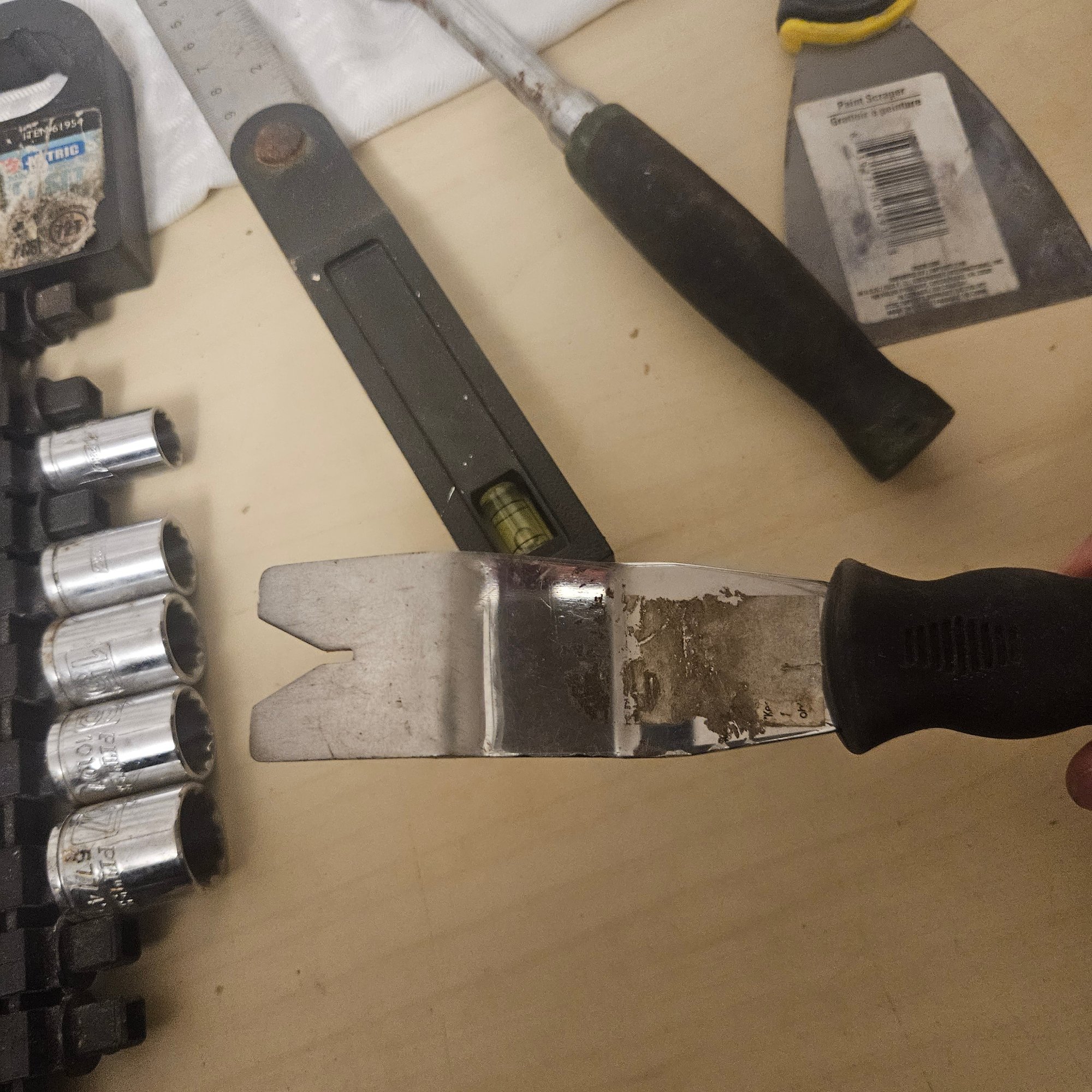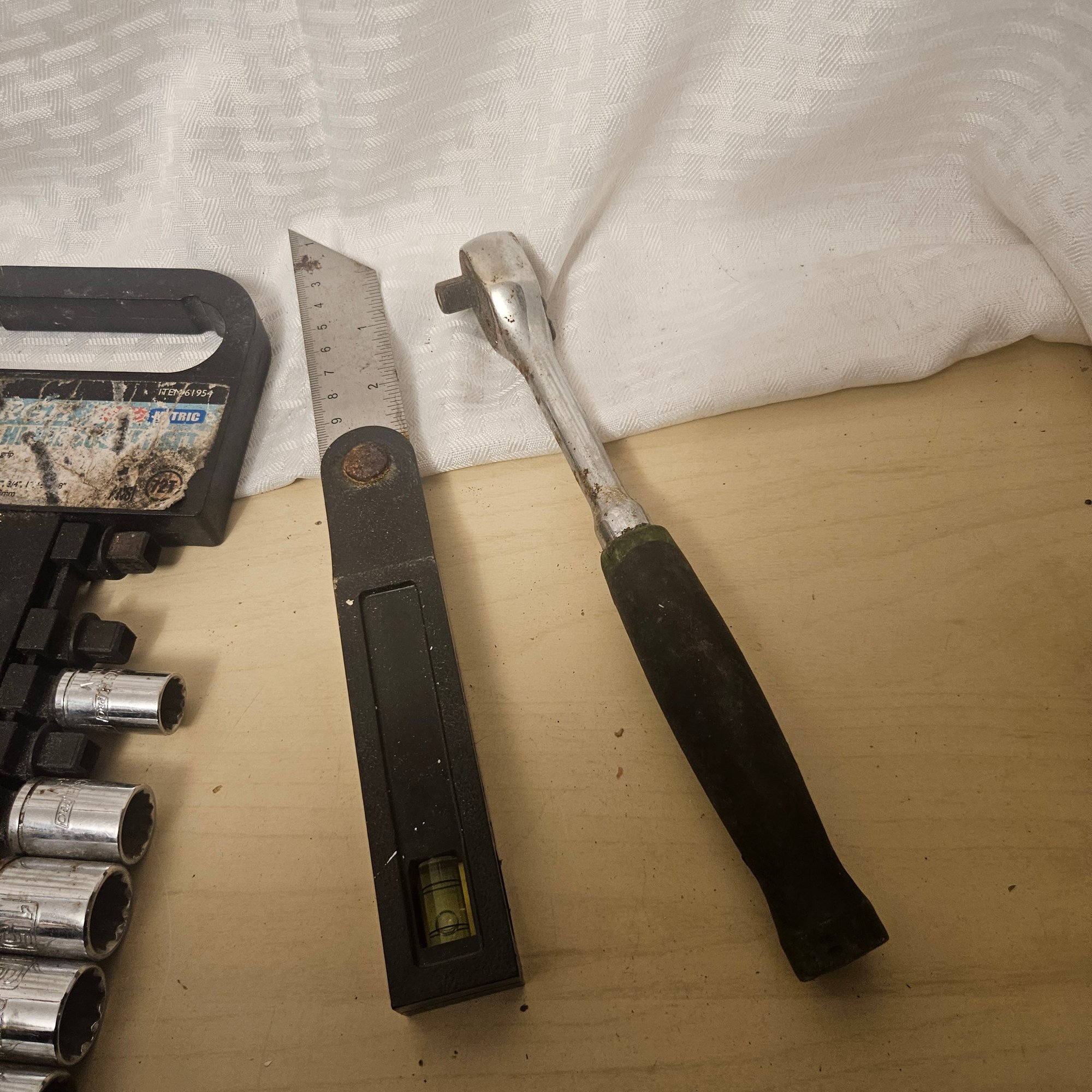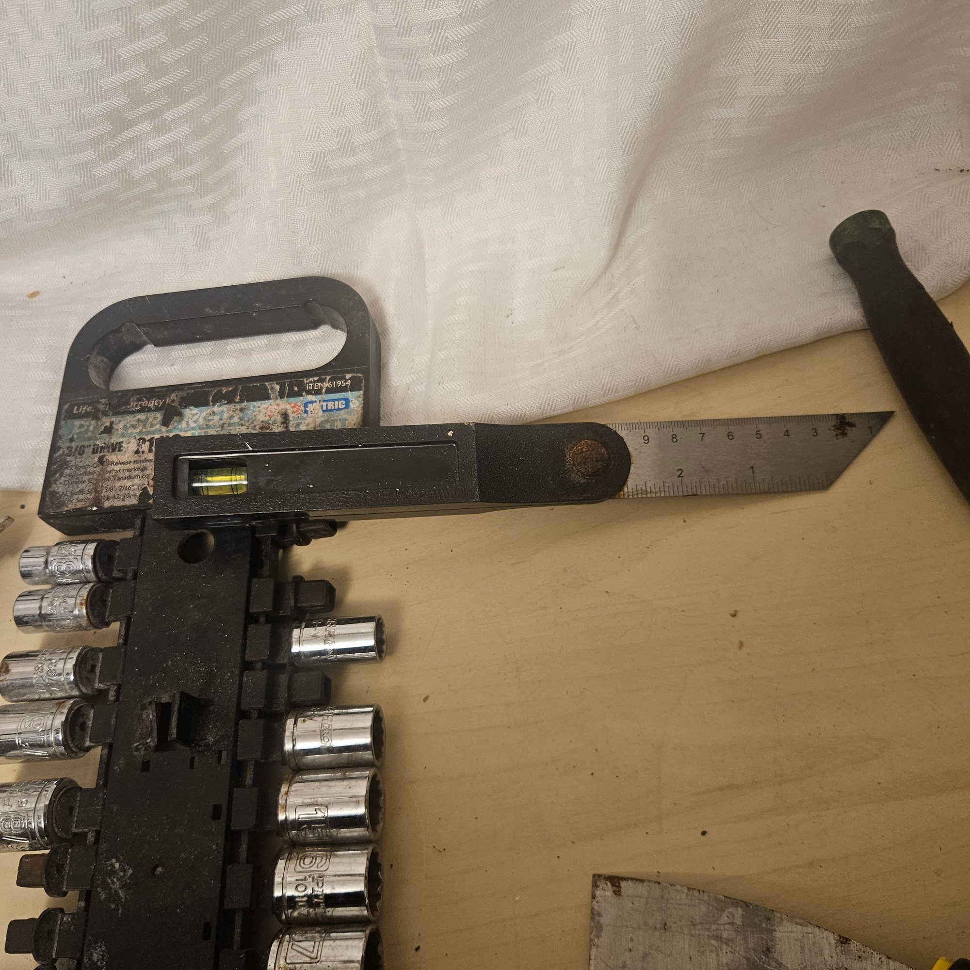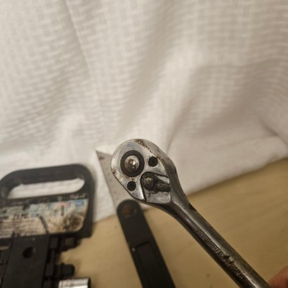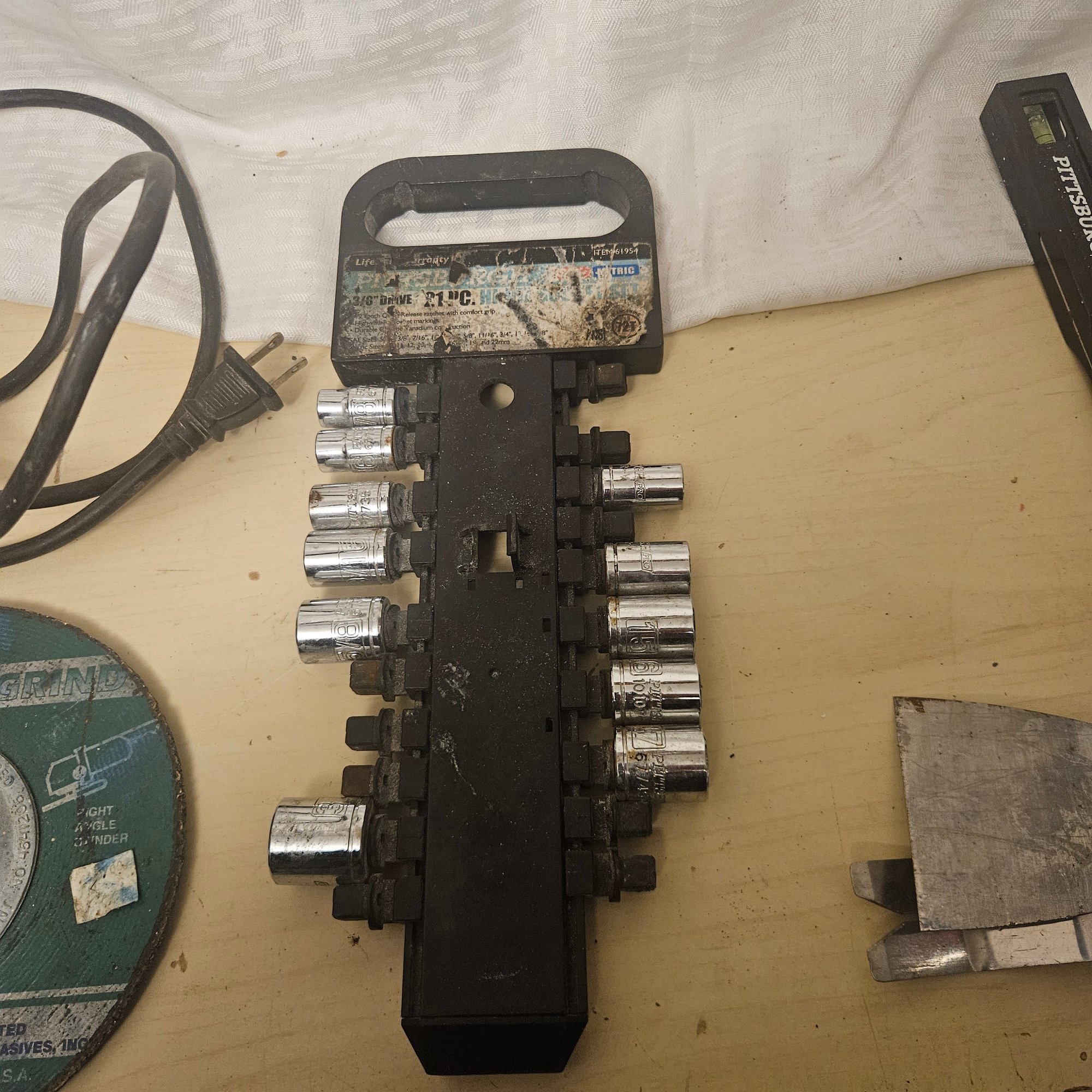This handy tool lot includes a Black & Decker sanding tool, a diamond blade saw blade, a set of assorted gear bits, and four additional miscellaneous tools. Ideal for DIYers, hobbyists, or workshop use, this assortment offers practical equipment for sanding, cutting, and general repair projects.