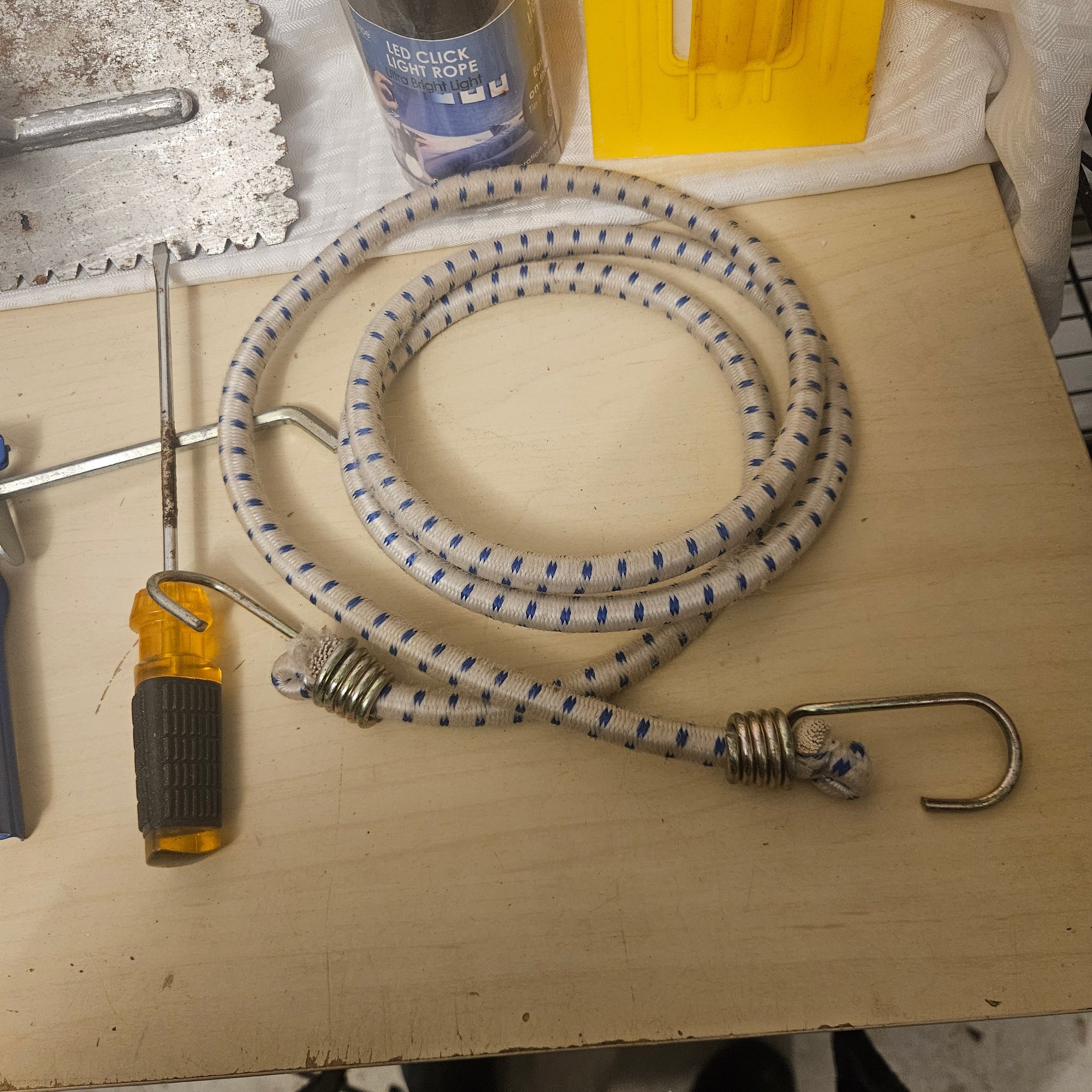 This useful tool lot includes assorted drywall tools, one screwdriver, a bungee cord, and additional miscellaneous items. Perfect for DIY projects, home repairs, or workshop use, this assortment offers practical tools and accessories for a variety of everyday tasks.