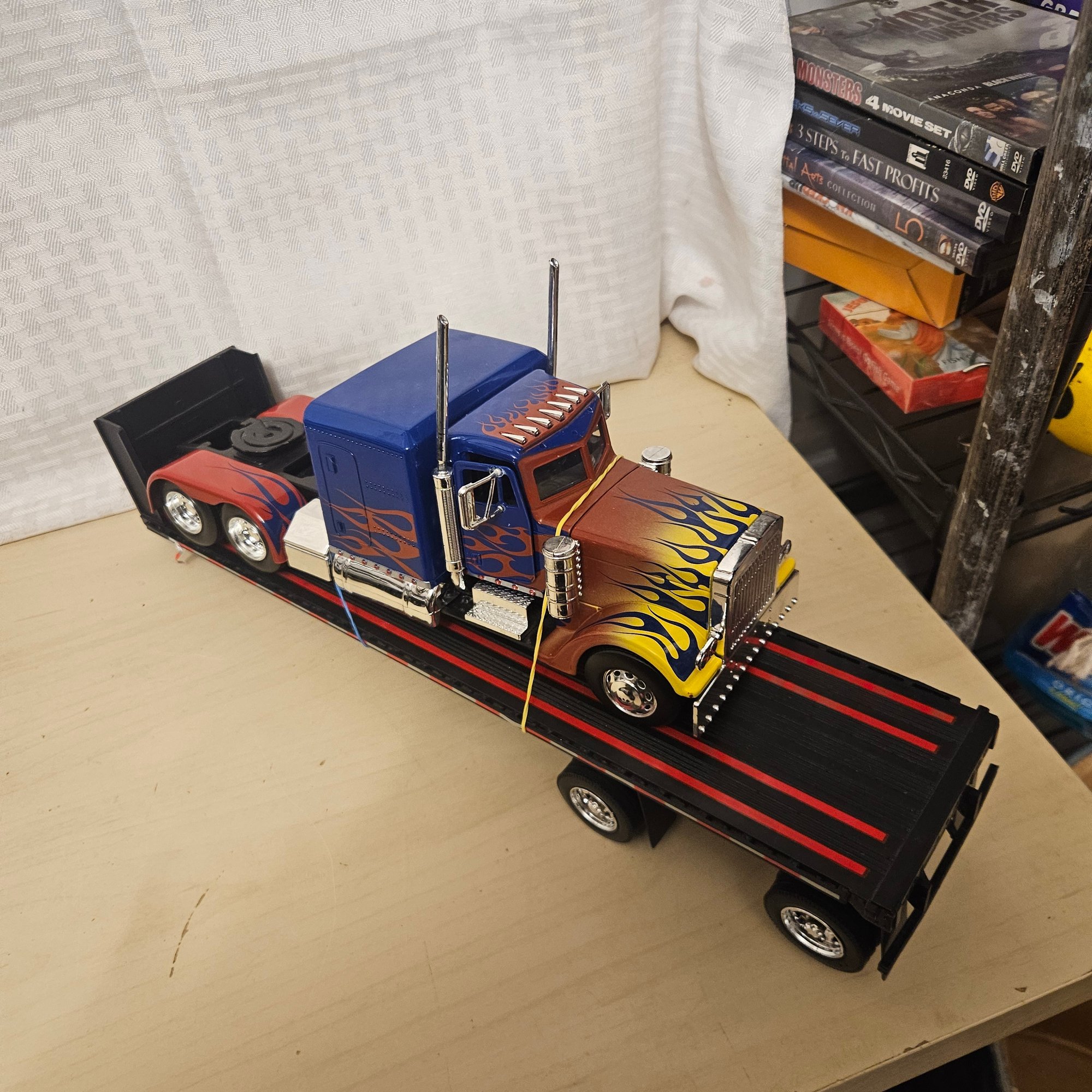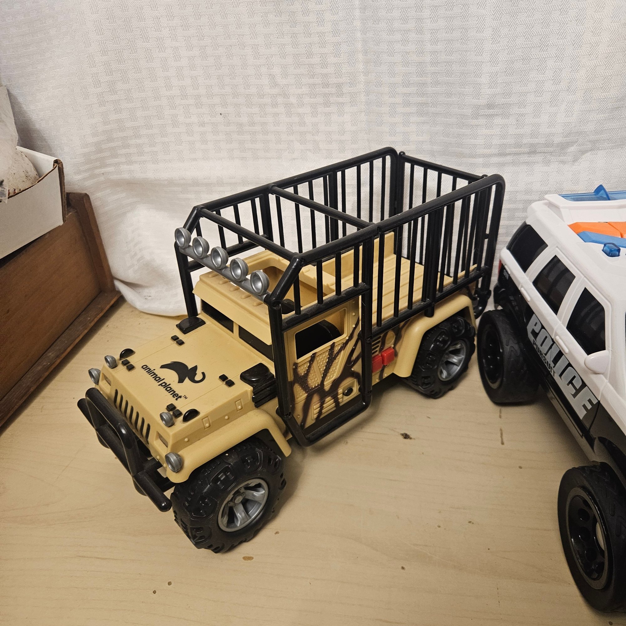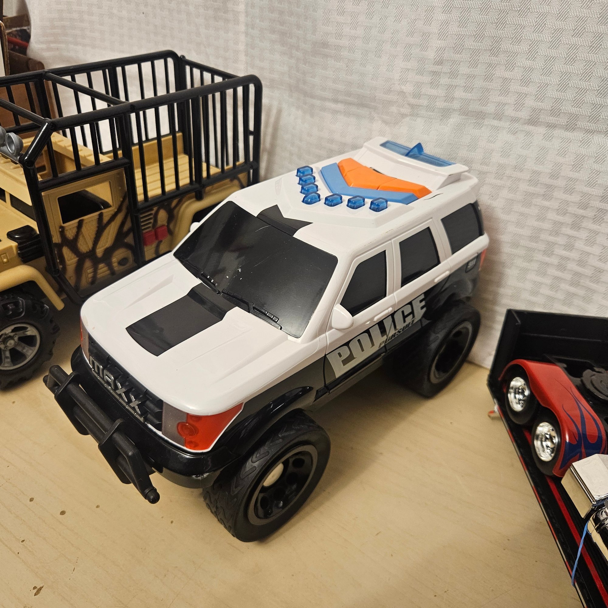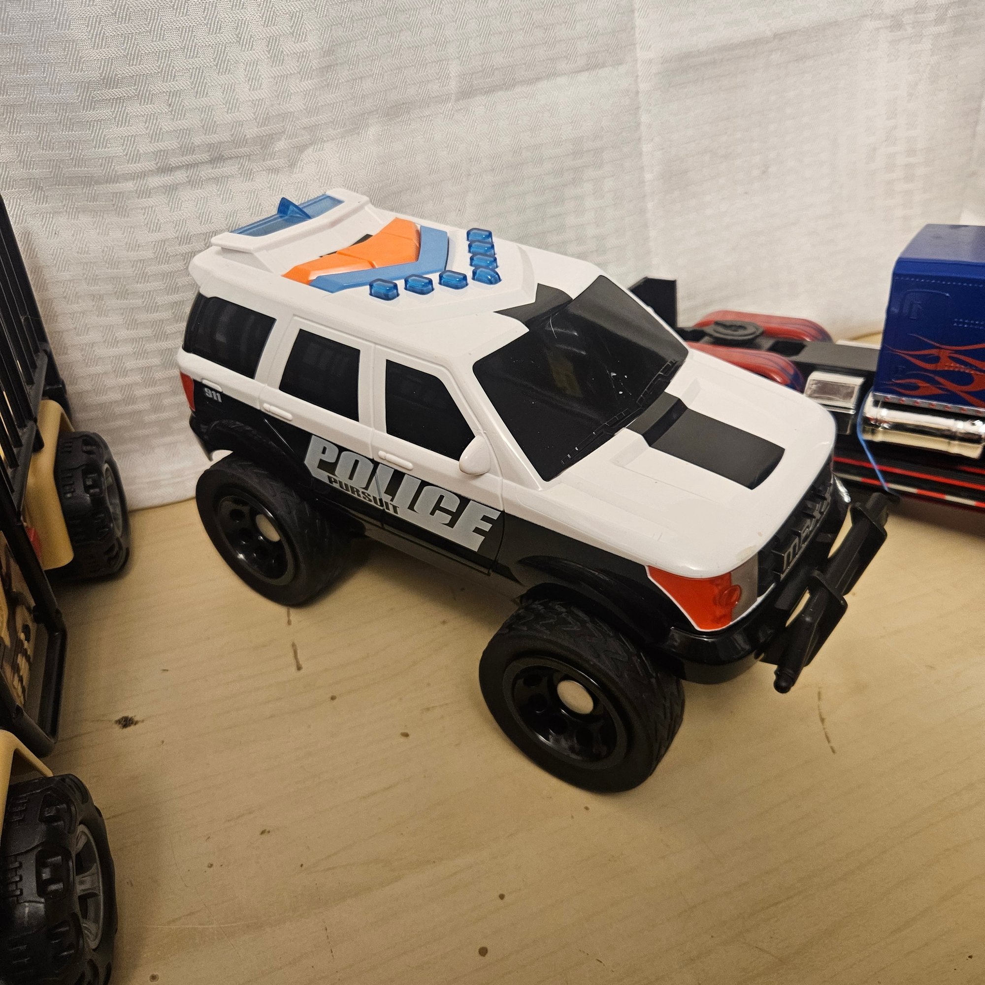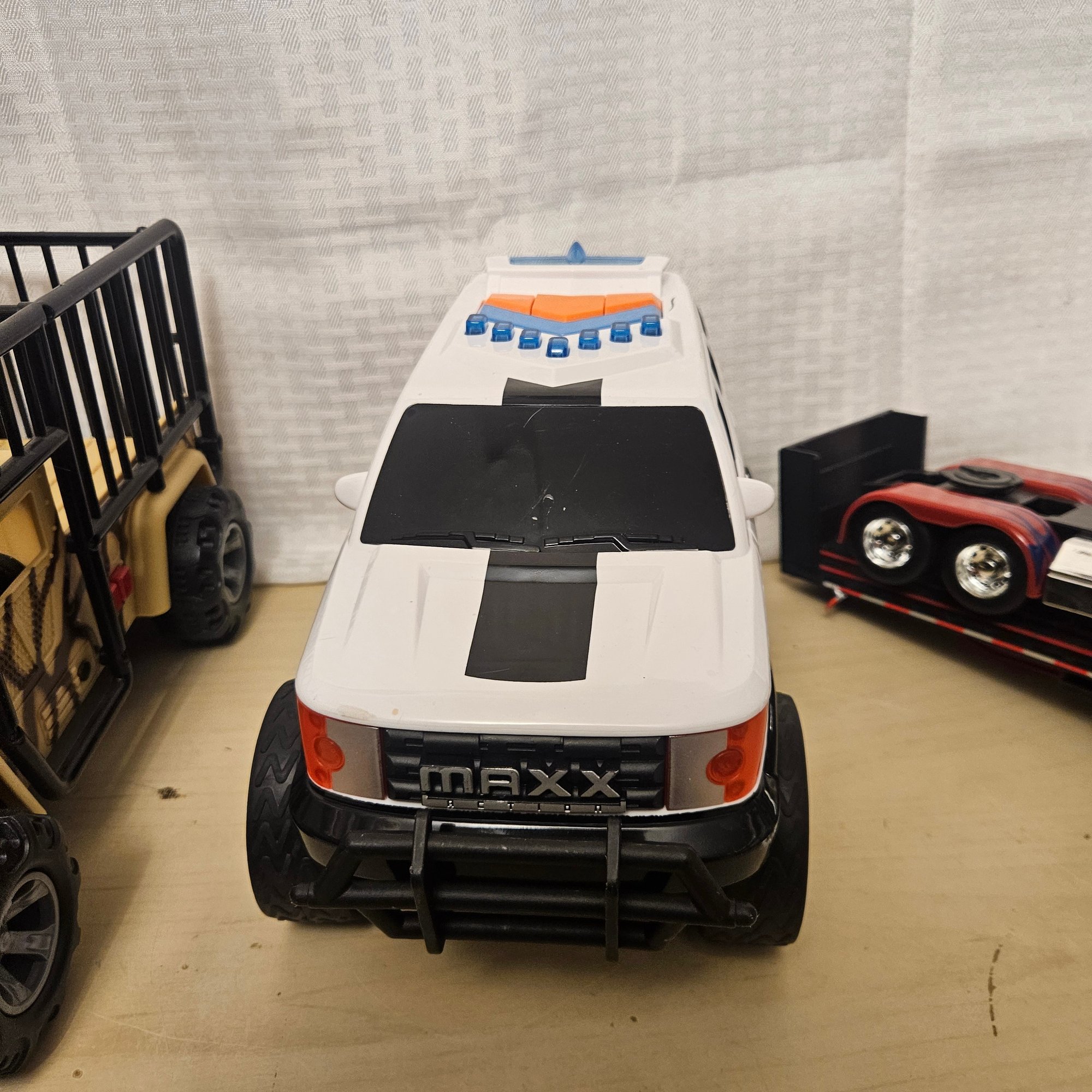 This lot includes three toy trucks: one military-style truck, one playable truck, and one truck version of Optimus Prime. Perfect for children, collectors, or fans of Transformers and action vehicles, this assortment offers imaginative play and display possibilities. A dynamic mix of functional and themed vehicles for any toy collection.