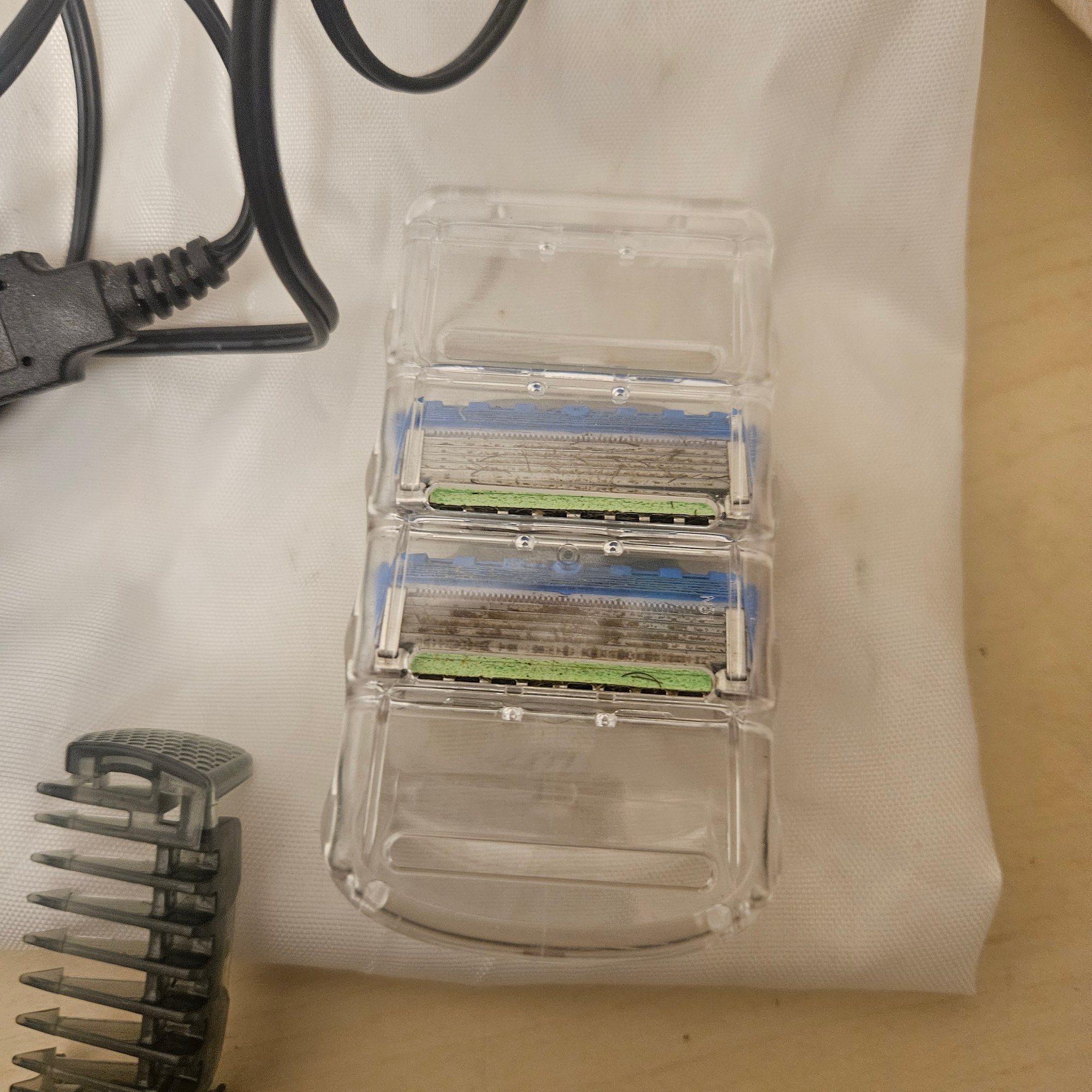 This practical lot includes a blue backpack that doubles as a suitcase, a complete shaving kit, and two walkie talkie chargers. Perfect for travelers, outdoor enthusiasts, or anyone looking to stay prepared on the go, this assortment combines convenience, organization, and essential travel accessories in one versatile package.