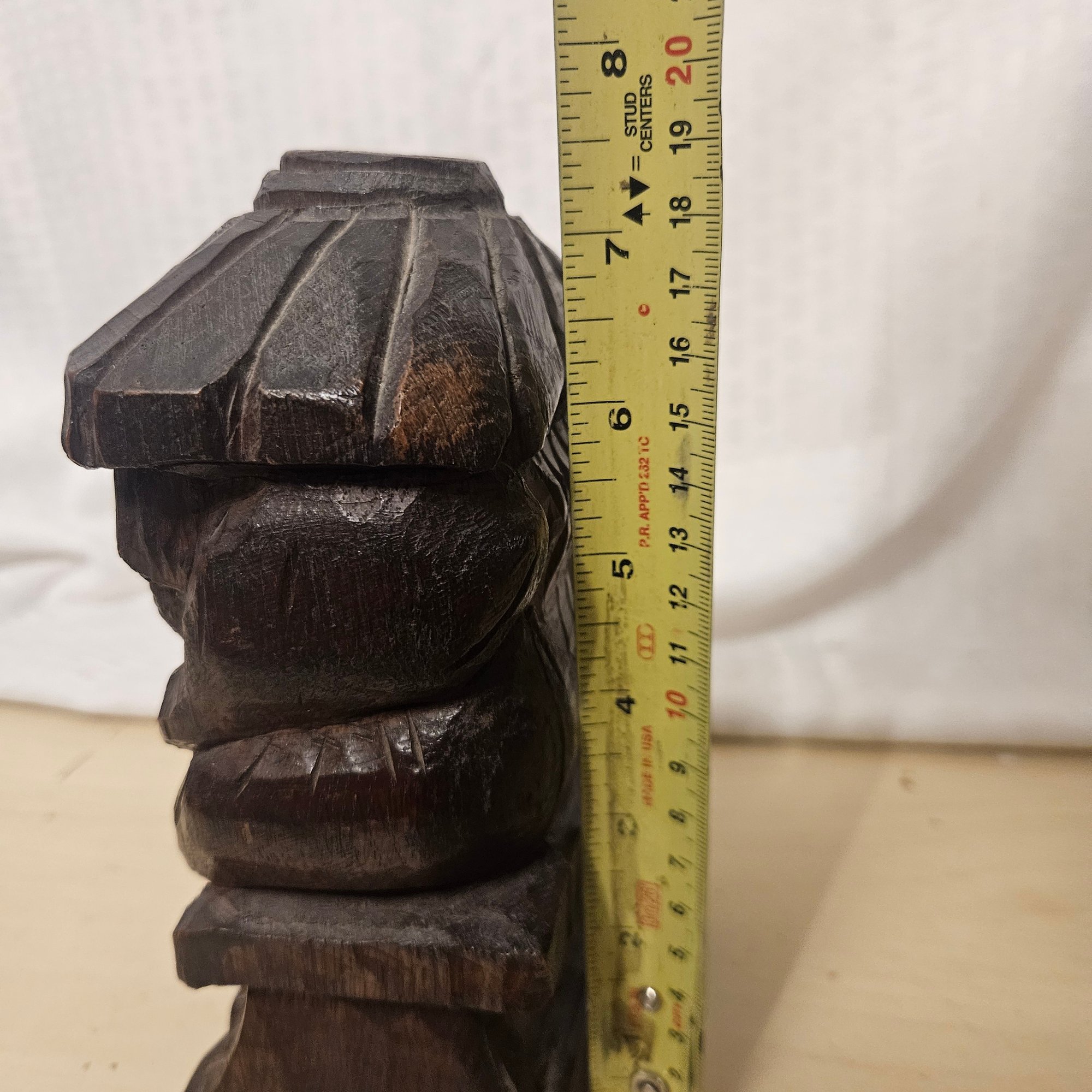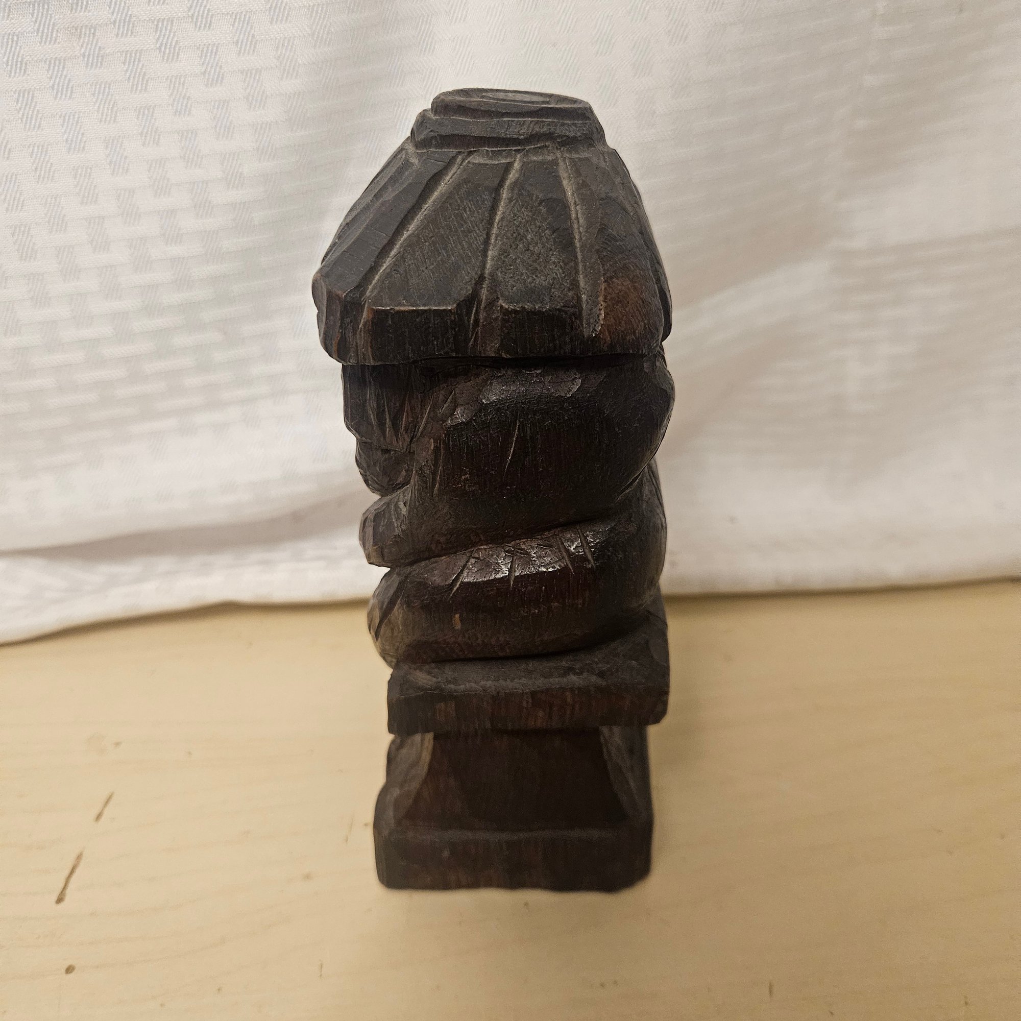 This striking and unique statue appears to be inspired by traditional Japanese Ainu art, featuring distinctive carved details and a strong cultural presence. The piece has a handcrafted look that reflects character, history, and artistic expression, making it a compelling addition to any collection or display. Ideal for art lovers, cultural enthusiasts, or anyone seeking a one-of-a-kind decorative accent with an intriguing story and visual appeal.