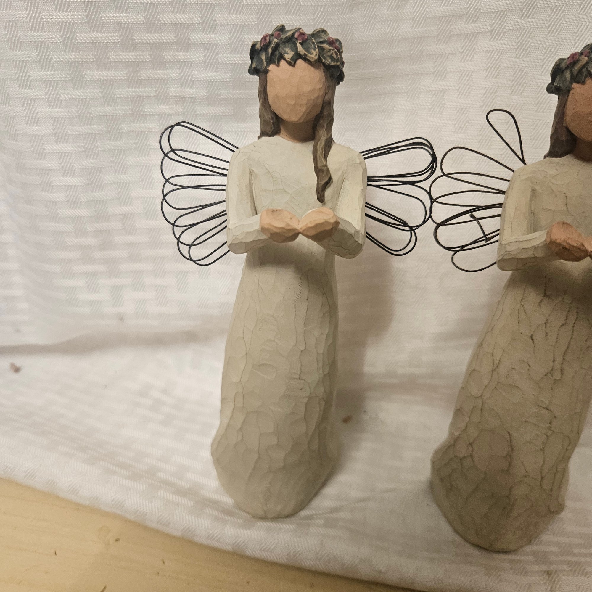 This lot features two angel figurines from the popular Willow Tree collection, known for their graceful designs and heartfelt symbolism. Perfect for collectors, gift-giving, or decorative display, these angels add a touch of serenity, beauty, and meaningful sentiment to any space.