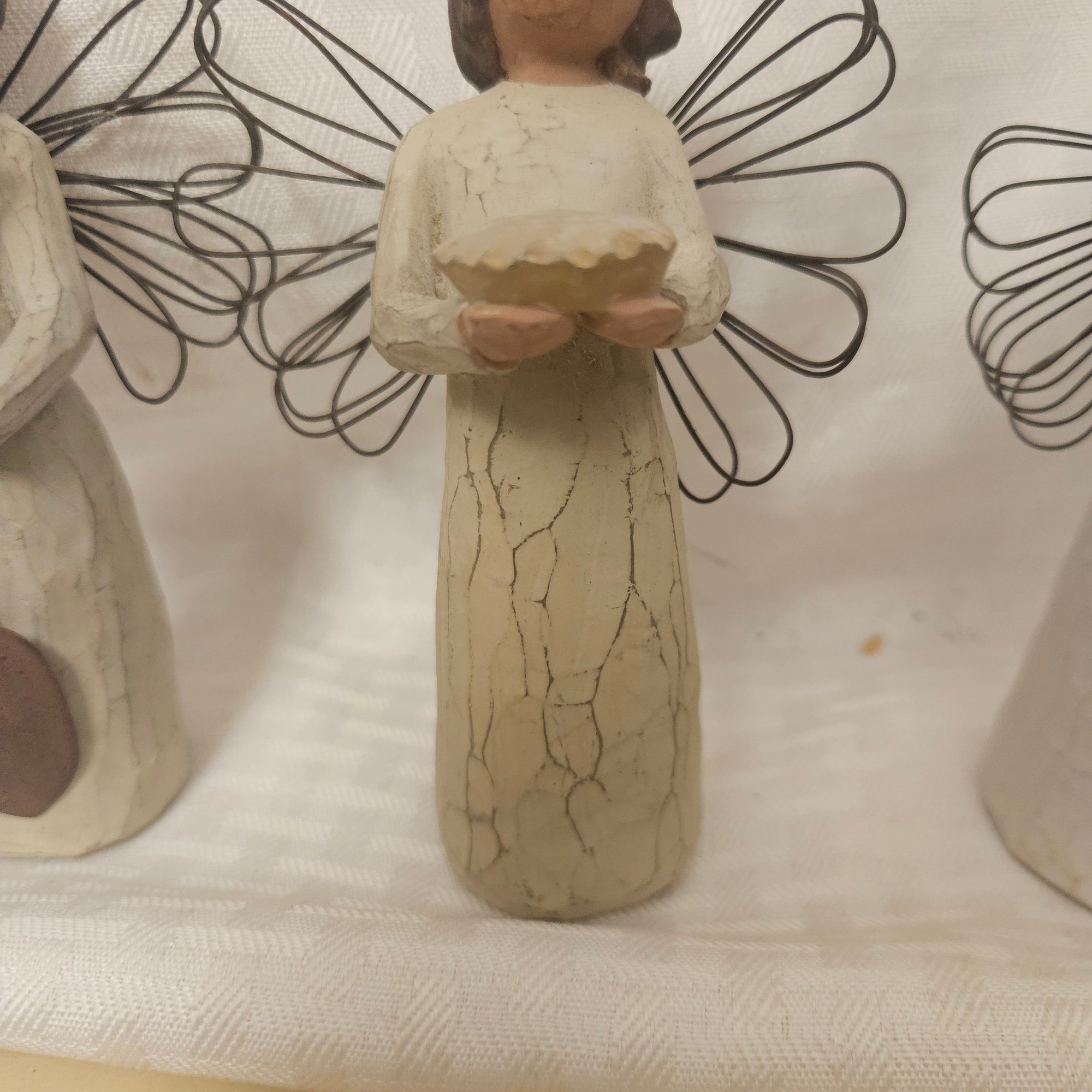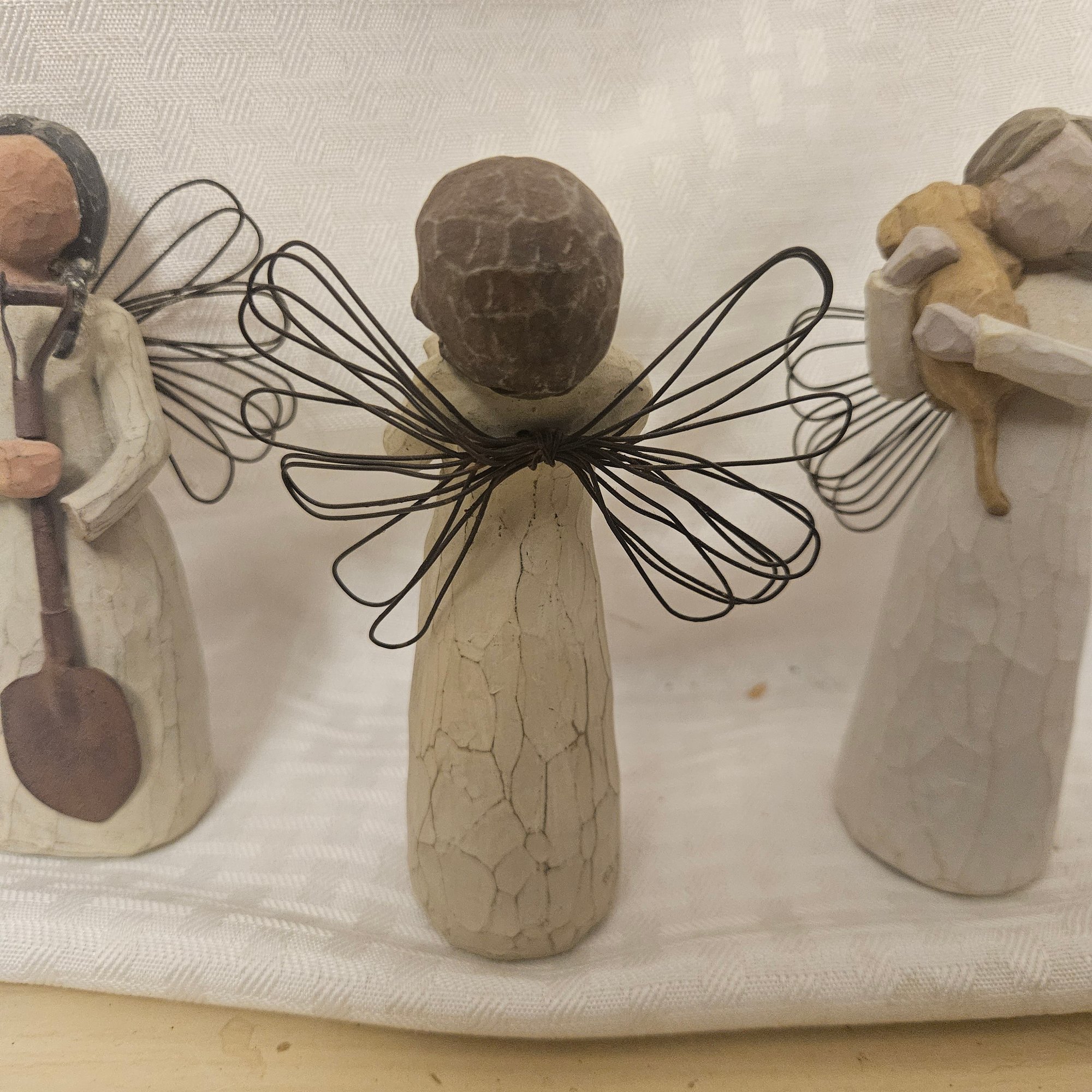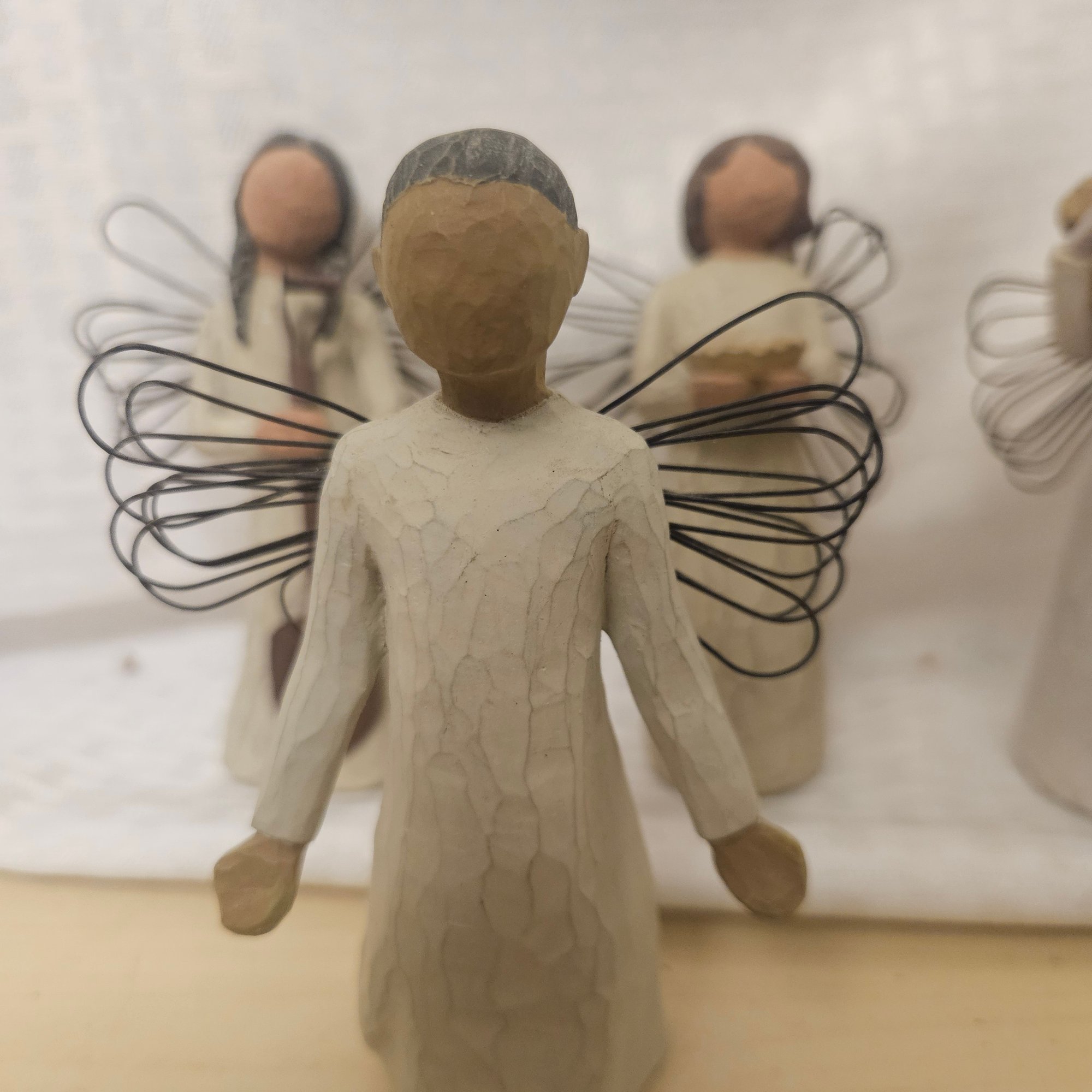This lot includes six different angel figurines from the Willow Tree collection, each beautifully crafted with the signature graceful and symbolic design. Perfect for collectors, gift-giving, or heartfelt home décor, this set adds serenity, charm, and meaningful sentiment to any display or collection.