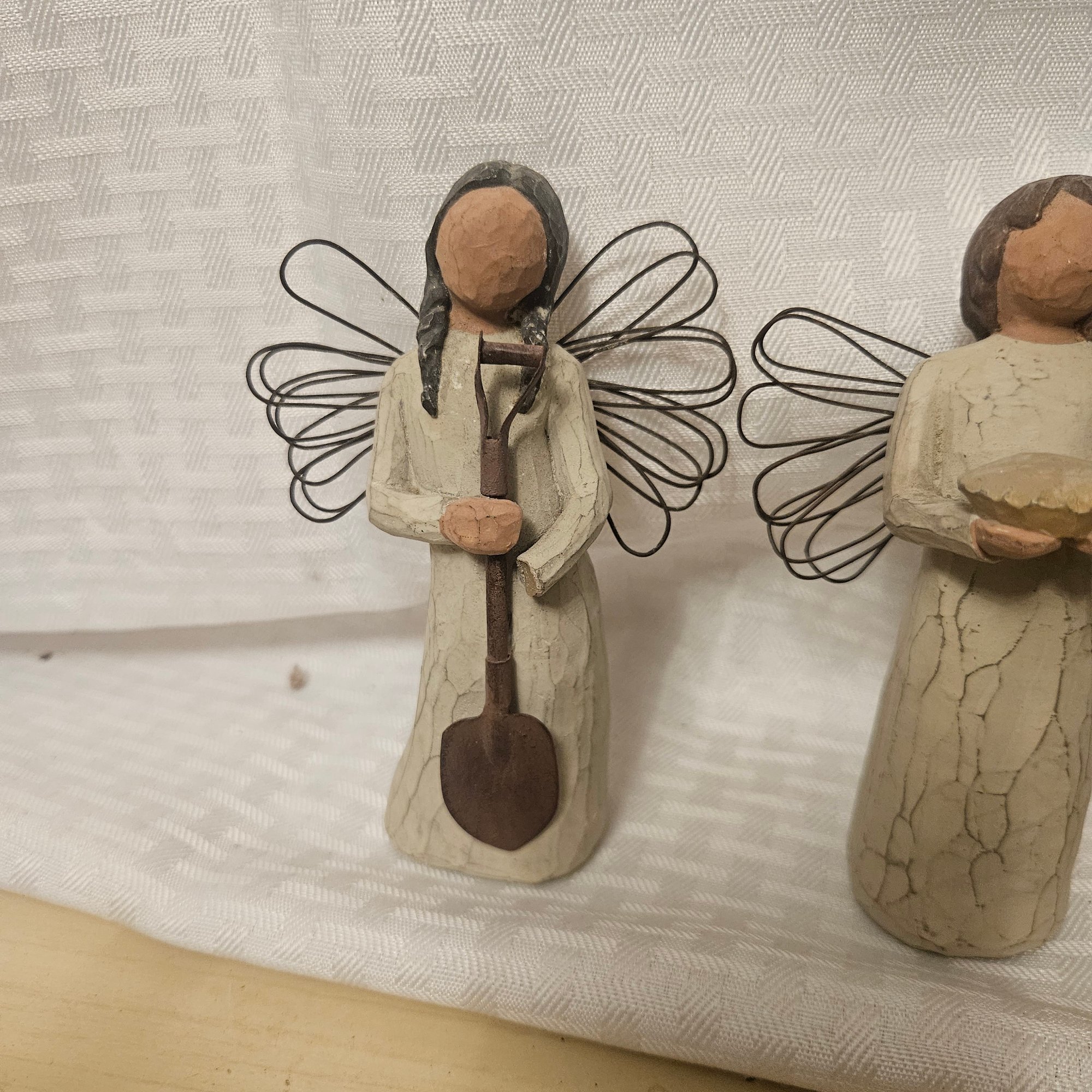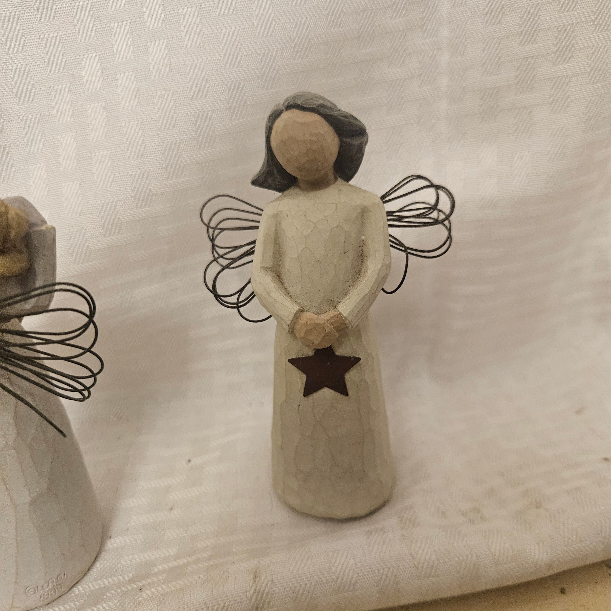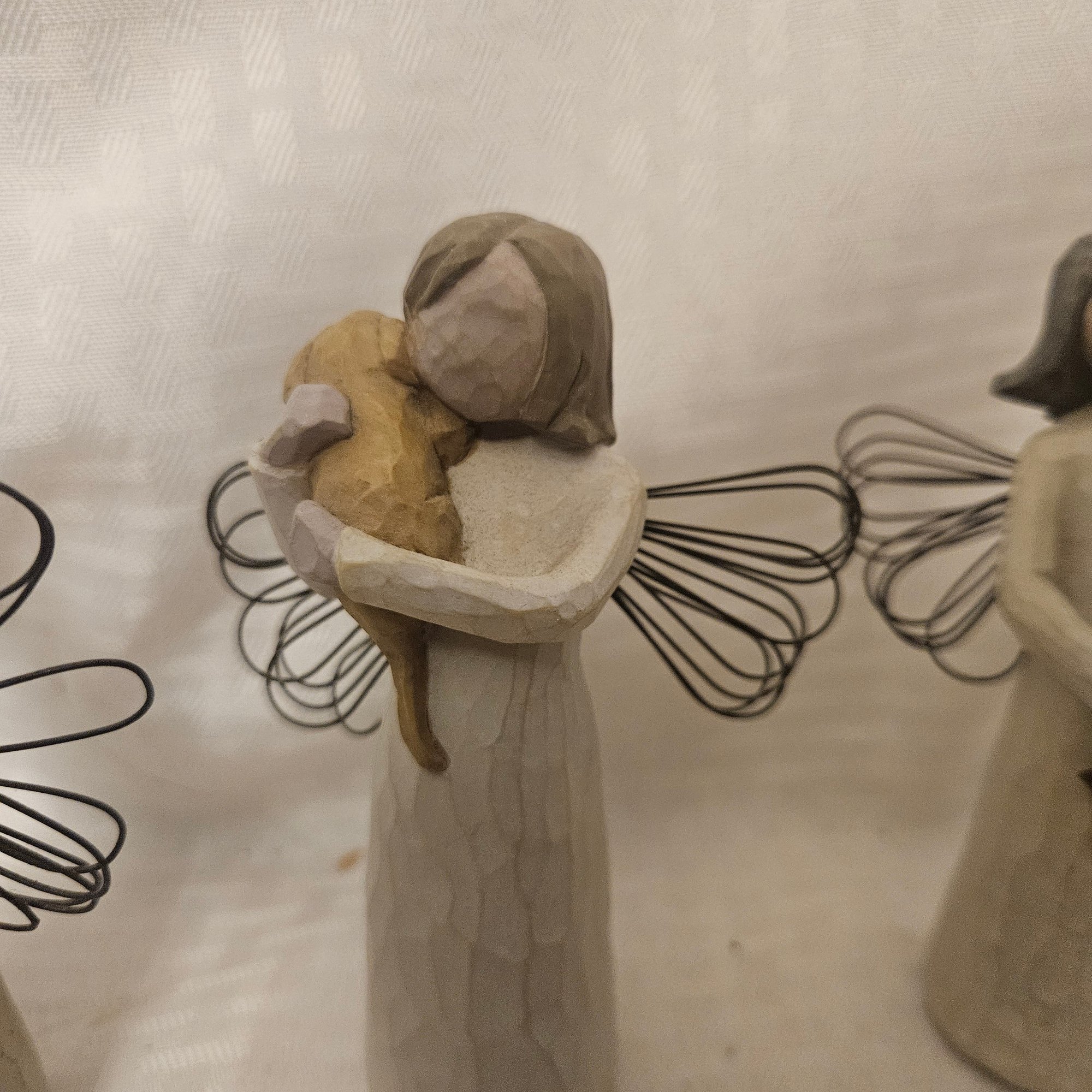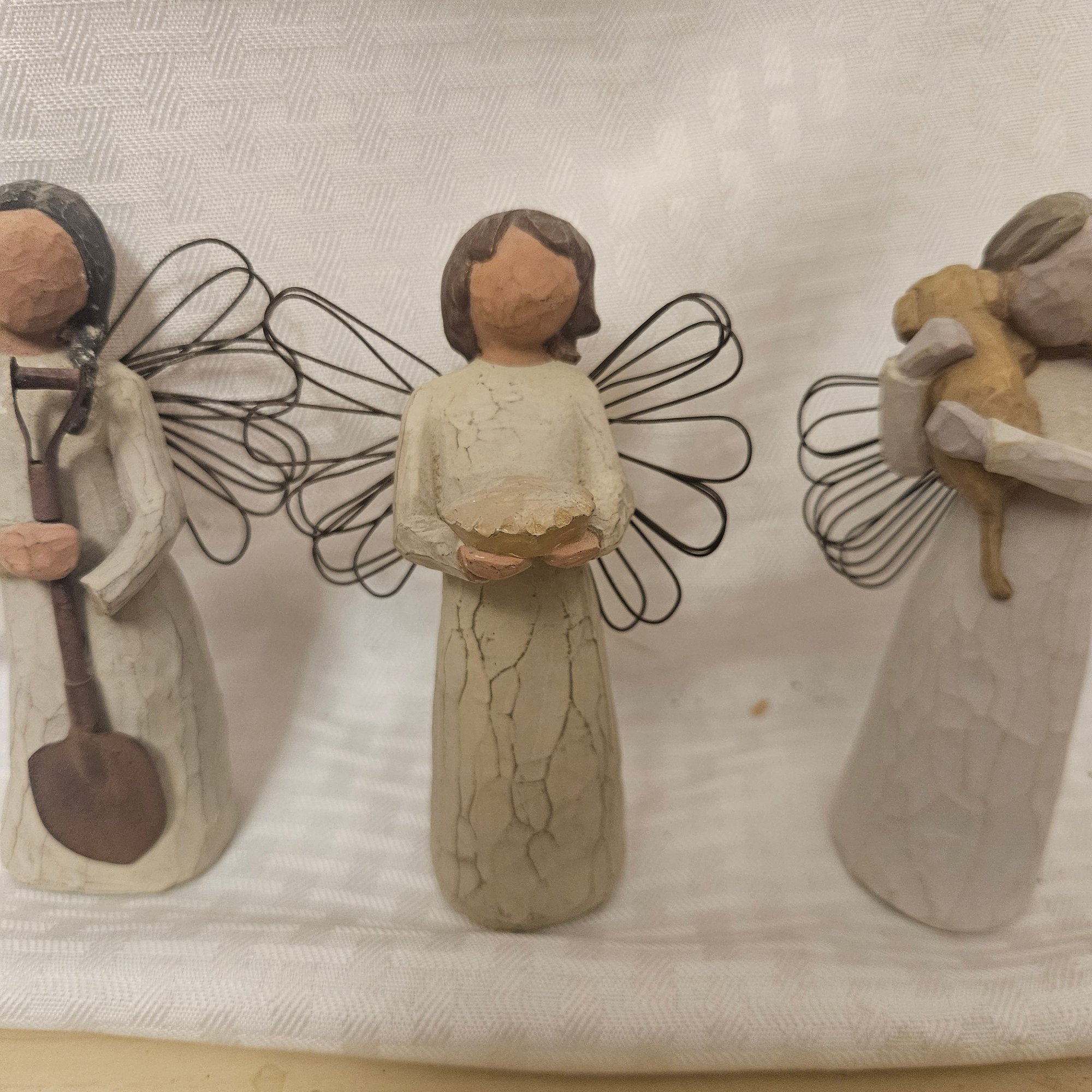 This lot includes six different angel figurines from the Willow Tree collection, each beautifully crafted with the signature graceful and symbolic design. Perfect for collectors, gift-giving, or heartfelt home décor, this set adds serenity, charm, and meaningful sentiment to any display or collection.