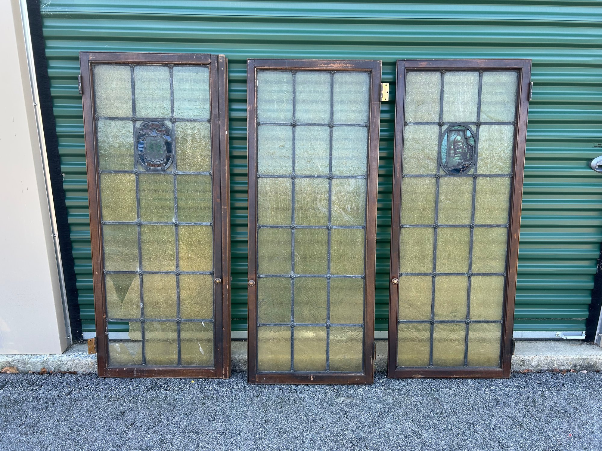 Approximately 59.5” by 24”. Some missing and cracked panels. Probably date to the early 1900’s. Great color images of the Rhode Island Statehouse and State seal. Someone could use the blank section to repair the other two, or they could be fully restored. They are impressive even with the damage. Truly a one of a kind find!