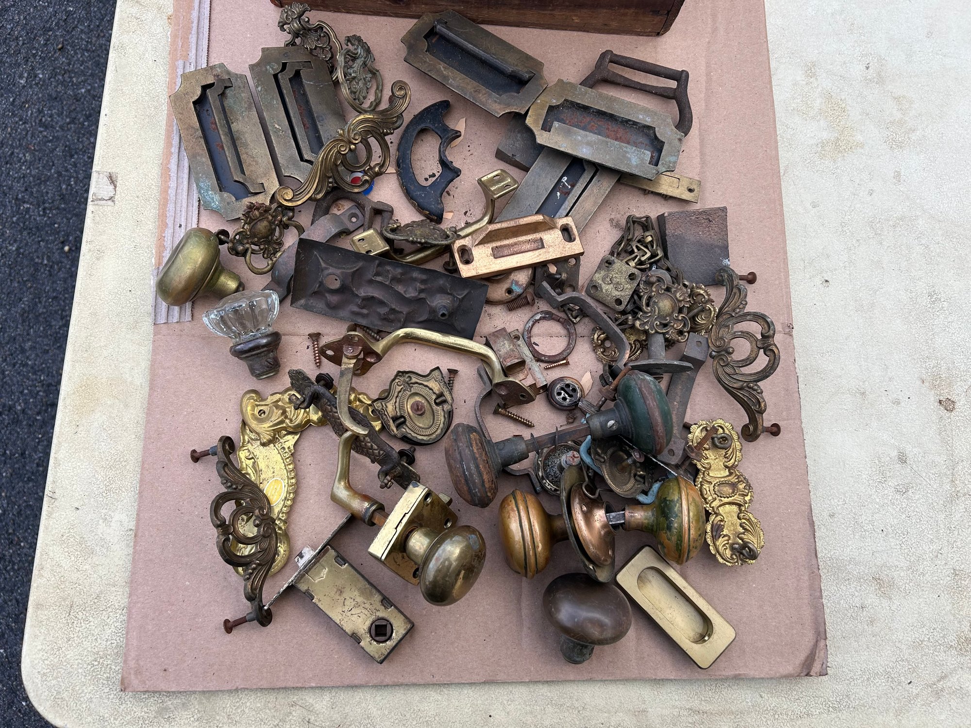Everything you see pictured. Mostly brass. Comes with wooden box. Lots of interesting hardware & accessories.