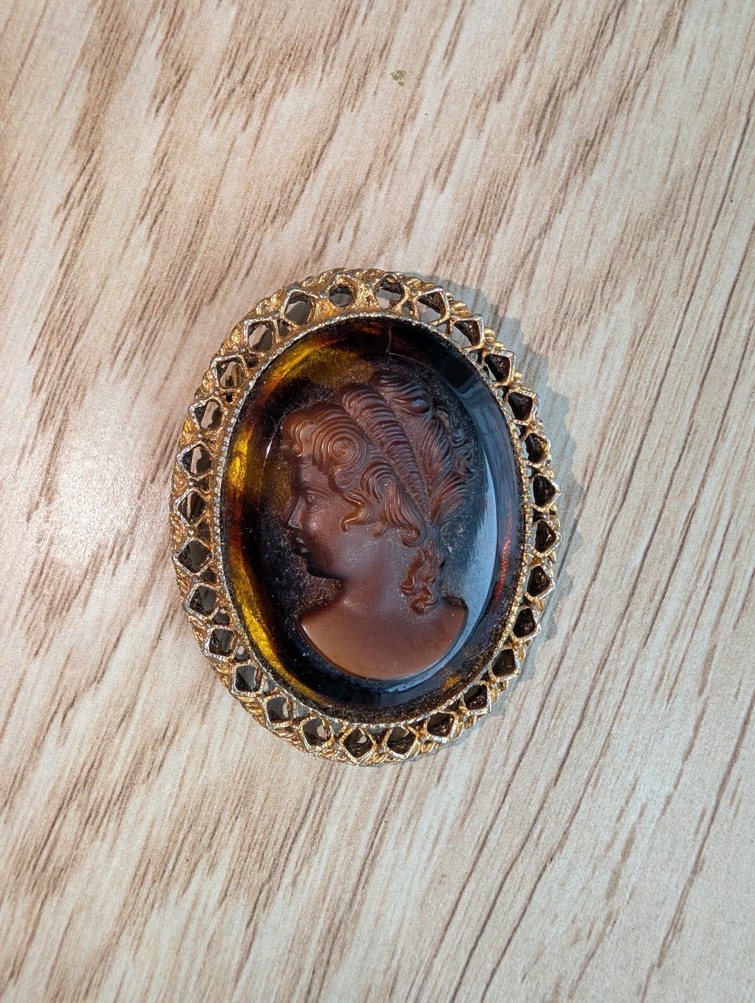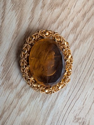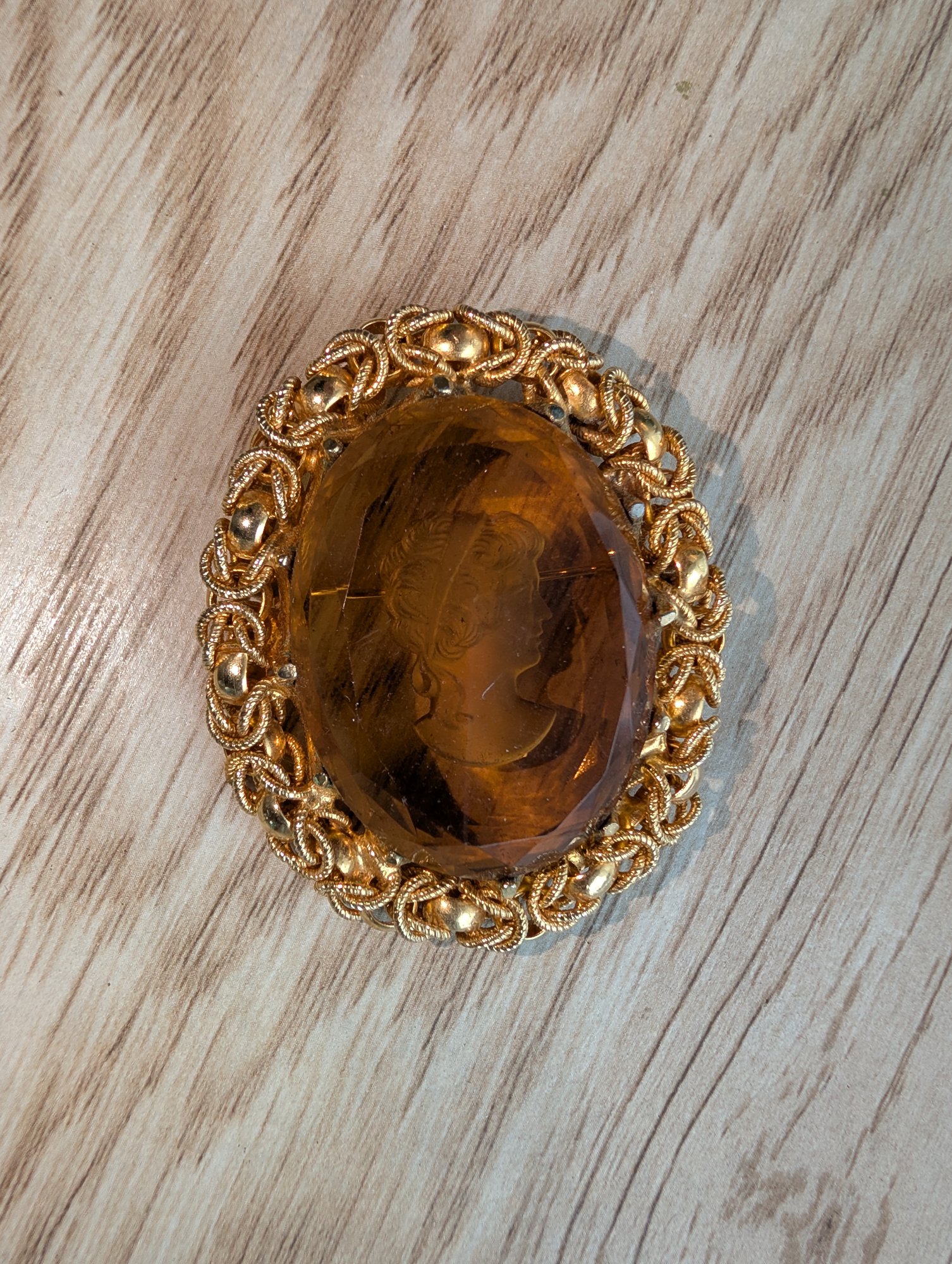 - Large Vintage Faceted Topaz Pressed Glass Cameo