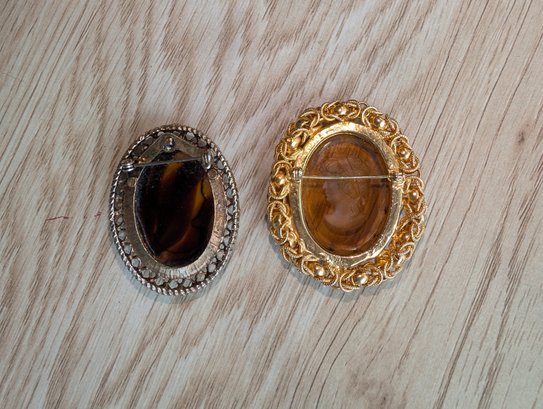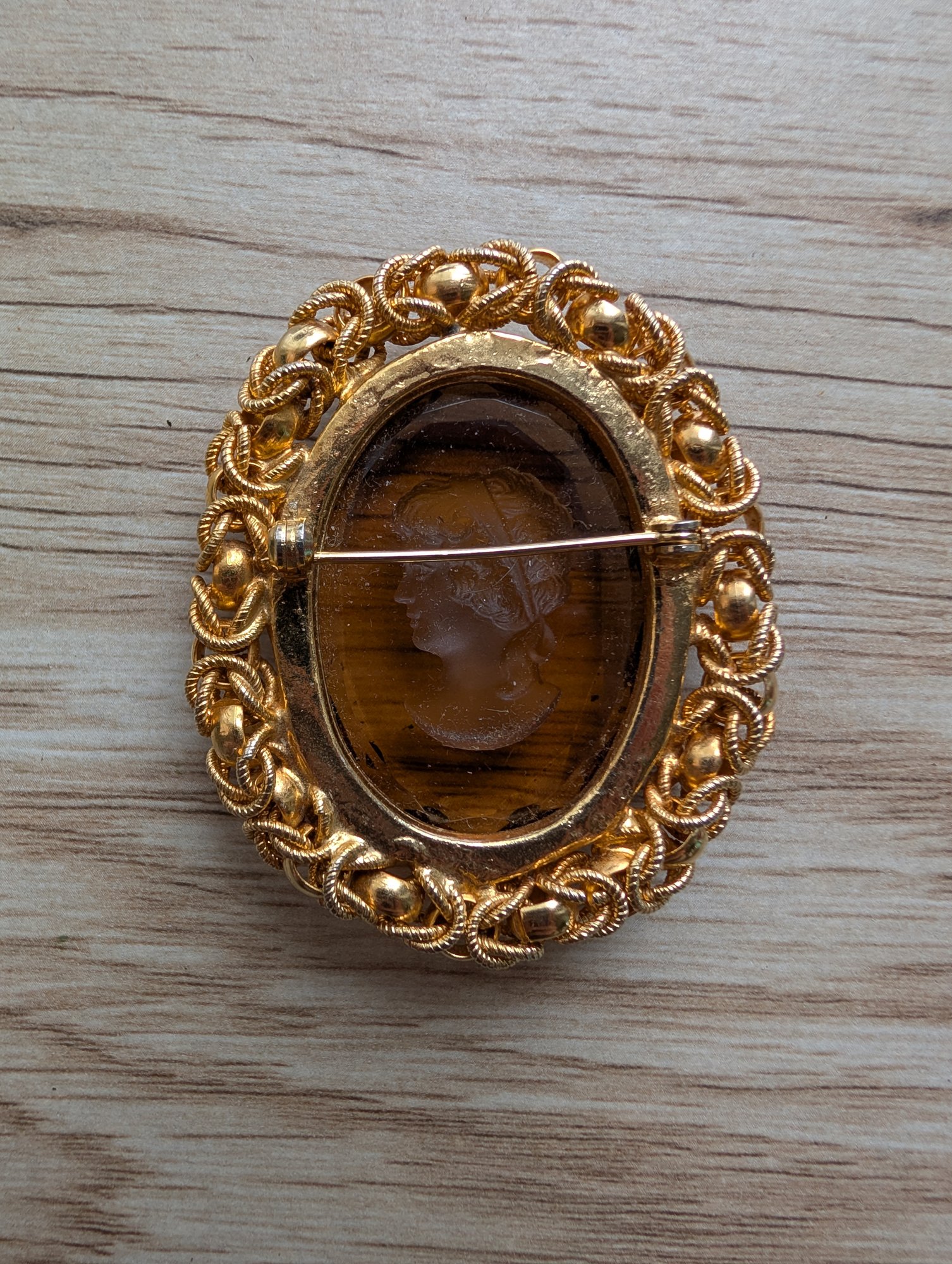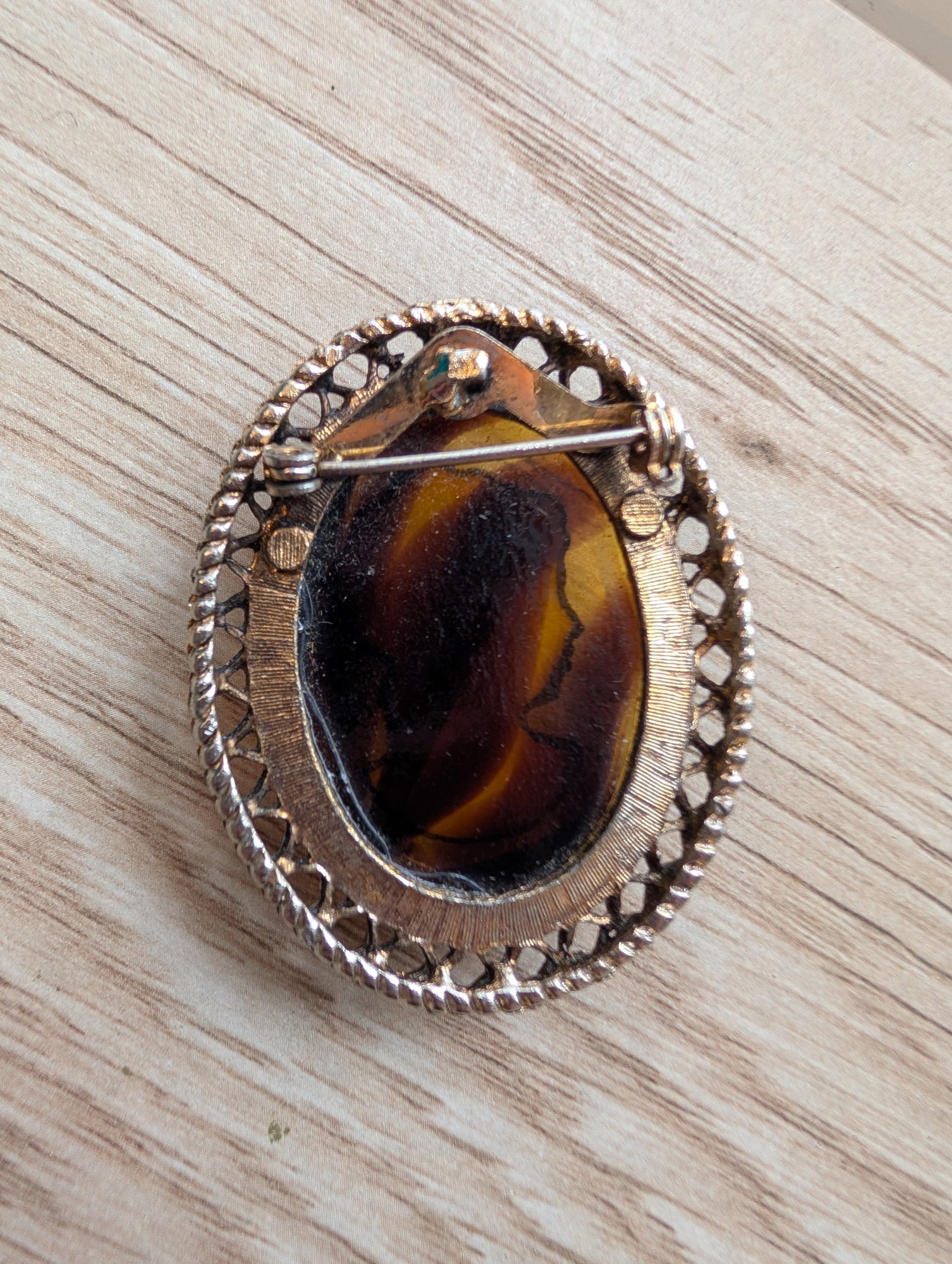 - Antique Vintage Tortoise Glass Carved Cameo Necklace Victorian Edwardian