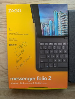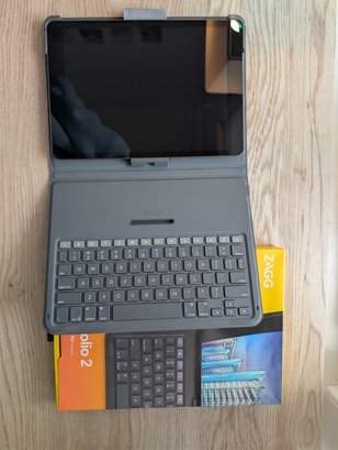 Ipad and Zagg Messenger Folio 2 Keyboard with cords and case - works