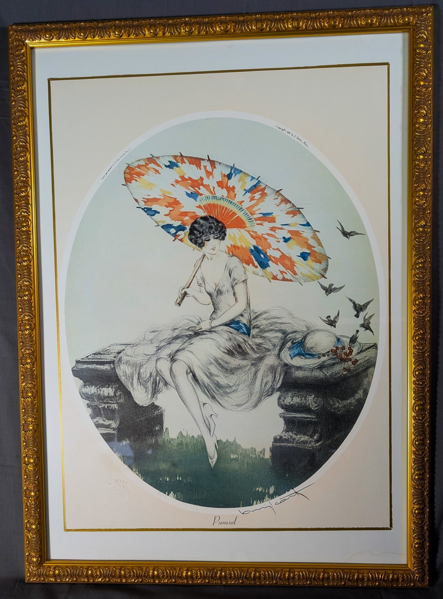 Parasol by Louis Icart Original Lithograph (43E)