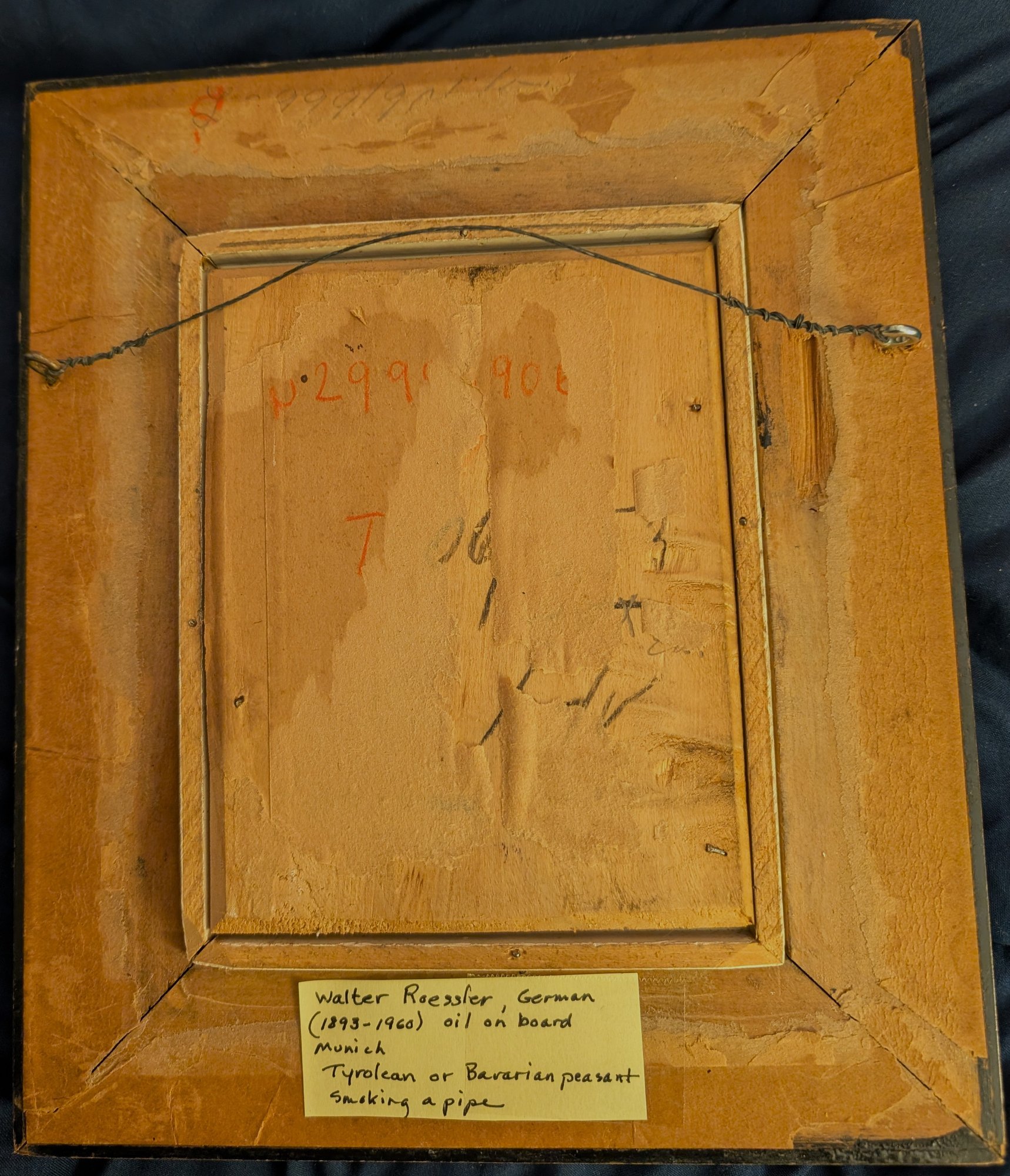 Bavarian or Tyrolean peasant smoking a pipe by Walter Roessler, German (1893 - 1960)
