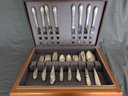 consists of: 10 salad forks, 8 regular forks, 8 knives (stainless blade with sterling handles), 14 spoons, 2 berry spoons, 2 butter knives, 1 pickle fork, 1 slotted spoon, 2 large salad serving pieces, and 2 large serving spoons.