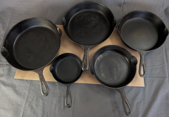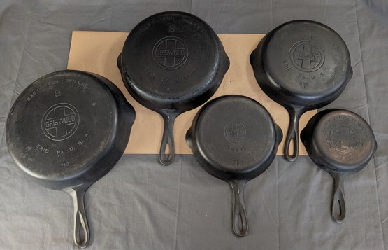 Set of Five Griswold Cast Iron Fry Pans (28E)