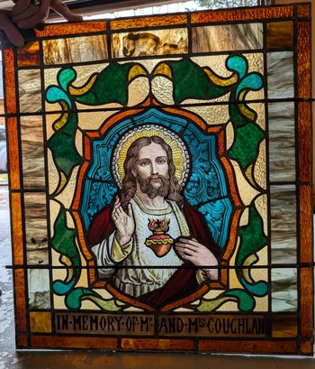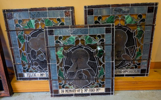 circa 1890; there is no frame around these pieces, just the leaded glass