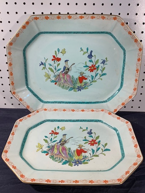 2 Antique Adams Calyx Ware Serving Trays, in the Rare "Piper" Pattern. No chips on either, some minor crazing consistent with their age. 14” and 16.5” platters.