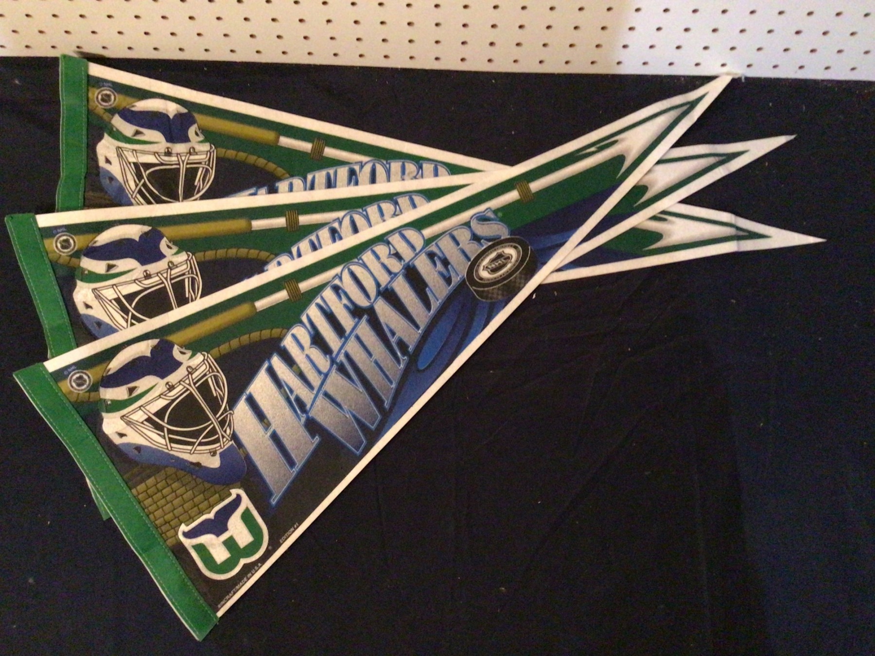 3 great condition first edition Whalers hockey team pennants. 28 inches
