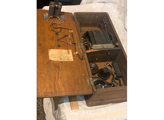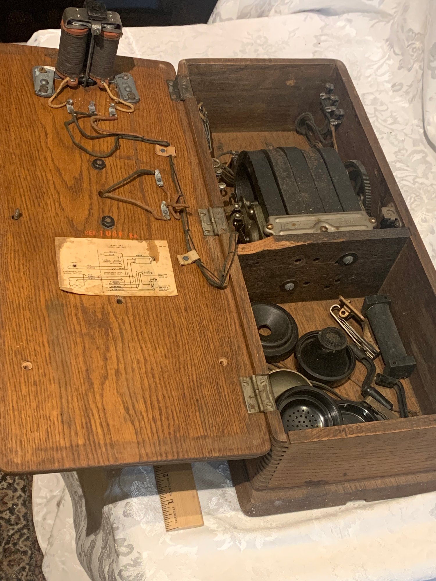 Around 20 inches tall. Solid oak cabinet. Has some parts inside to reassemble.