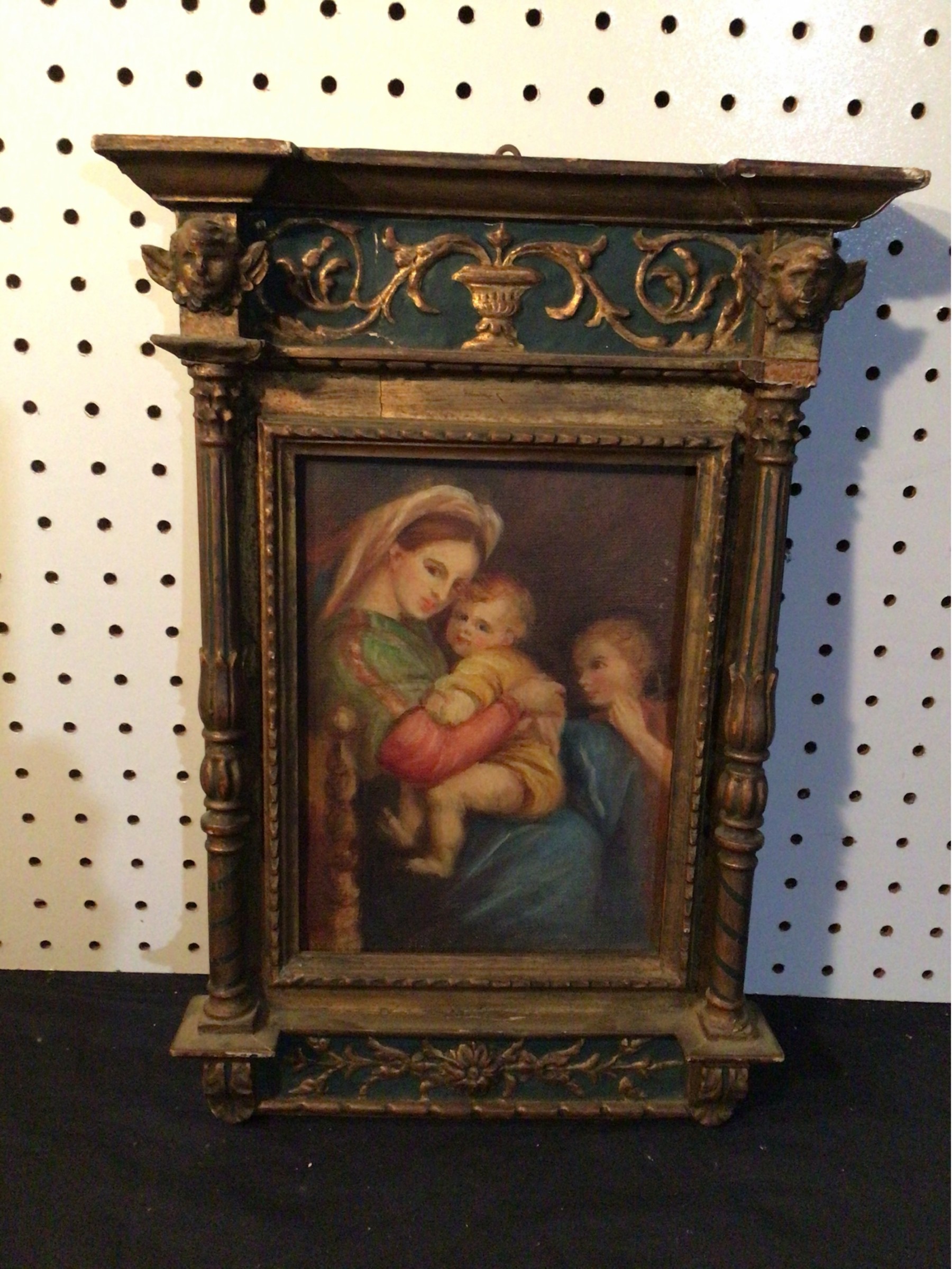 Beautifully rendered oil painting on canvas of Madonna & Child, housed in original 19th Century frame. We believe of Italian origins. 16.5”x11.5” frame size: 9”x7” canvas size. Excellent condition.