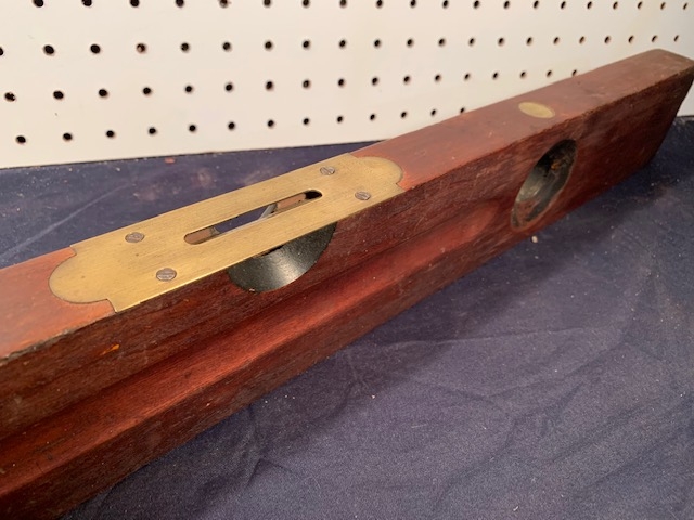 Antique Wooden Carpenter's Level with Brass, and Marked Stanley. Excellent condition, both bubbles work fine. Good Wood as well.