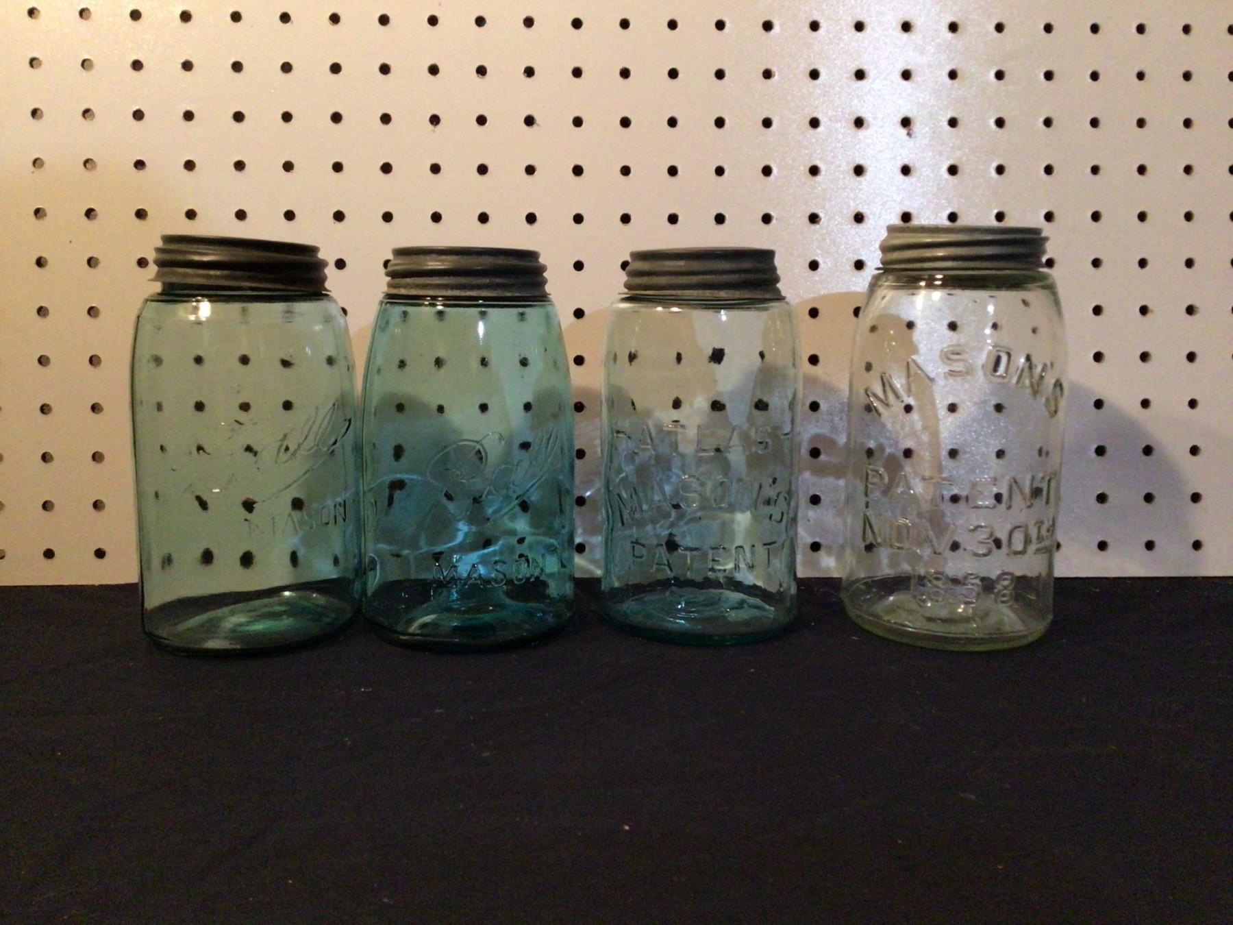 One of several listings for Antique Mason Jars. This lot includes 4 Jars with good Zinc Lids. All Cleaned and ready for repurposing in your home. Great, unique Storage or use for various Crafts, Candles, and the like.