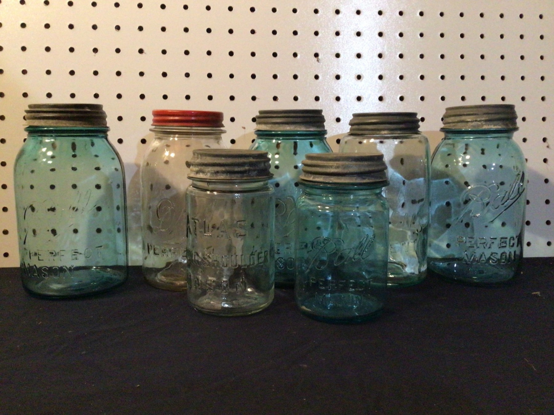 One of several listings for Antique Mason Jars. This lot includes 7 Jars with good Zinc Lids. All Cleaned and ready for repurposing in your home. Great, unique Storage or use for various Crafts, Candles, and the like.