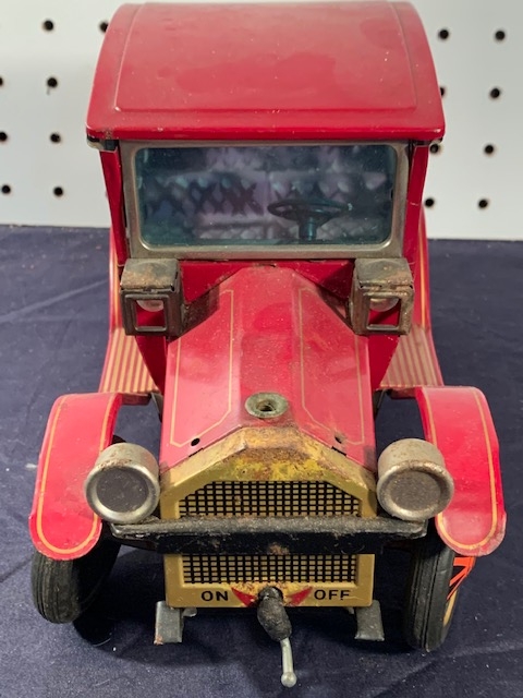 Nice Clean Tin Car, Battery Operated, with clean battery compartment. 9” in length.
