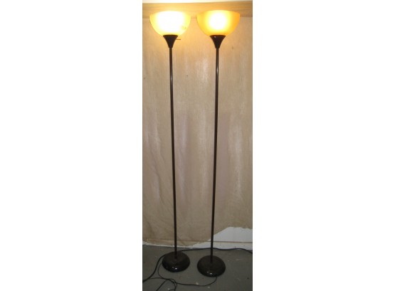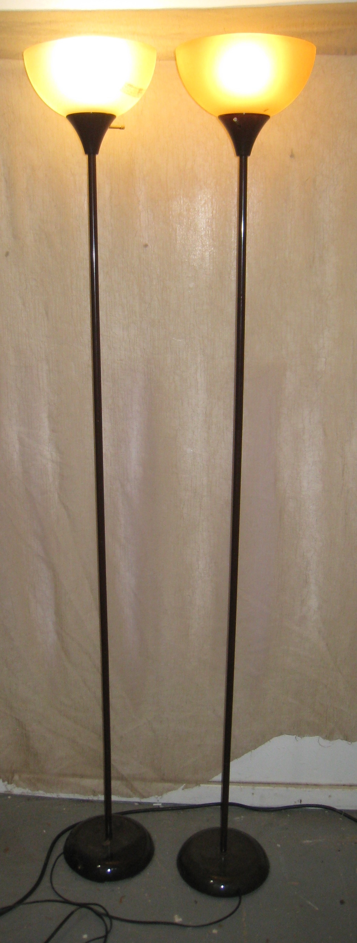 Dark brown bases, working condition. 3 way bulb. 10W x 71H