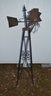 wrought iron windmill turns in the wind, has one bent metal flange but still turns fine on a windy day