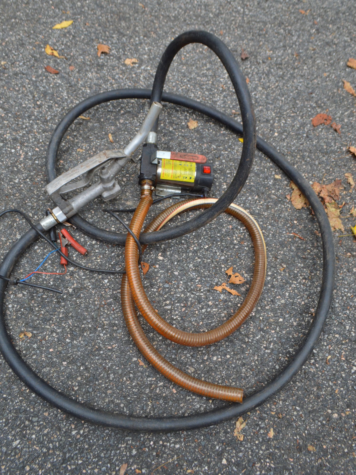 Used for diesel transfer previously . the suction hose needs the tip cut off and to be reclamped as it split off on the connection to the main pump other wise hose is intact.