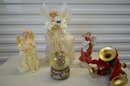 Glory to the new born King two tree toppers , one musical globe , and one porcelain angel and child.