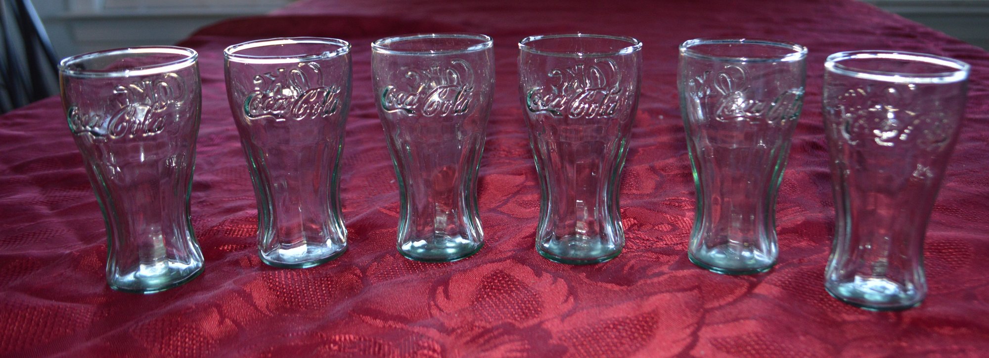 set of 6 Classic coke glasses. On one side Coca Cola and COKE on the other. These are 5" glasses