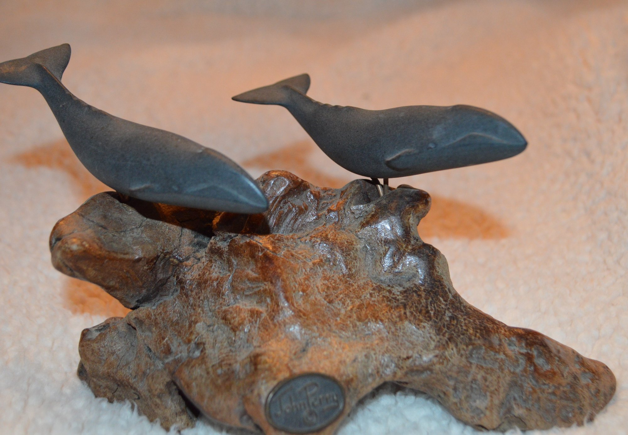 Beautiful sculpture of two whales swimming together