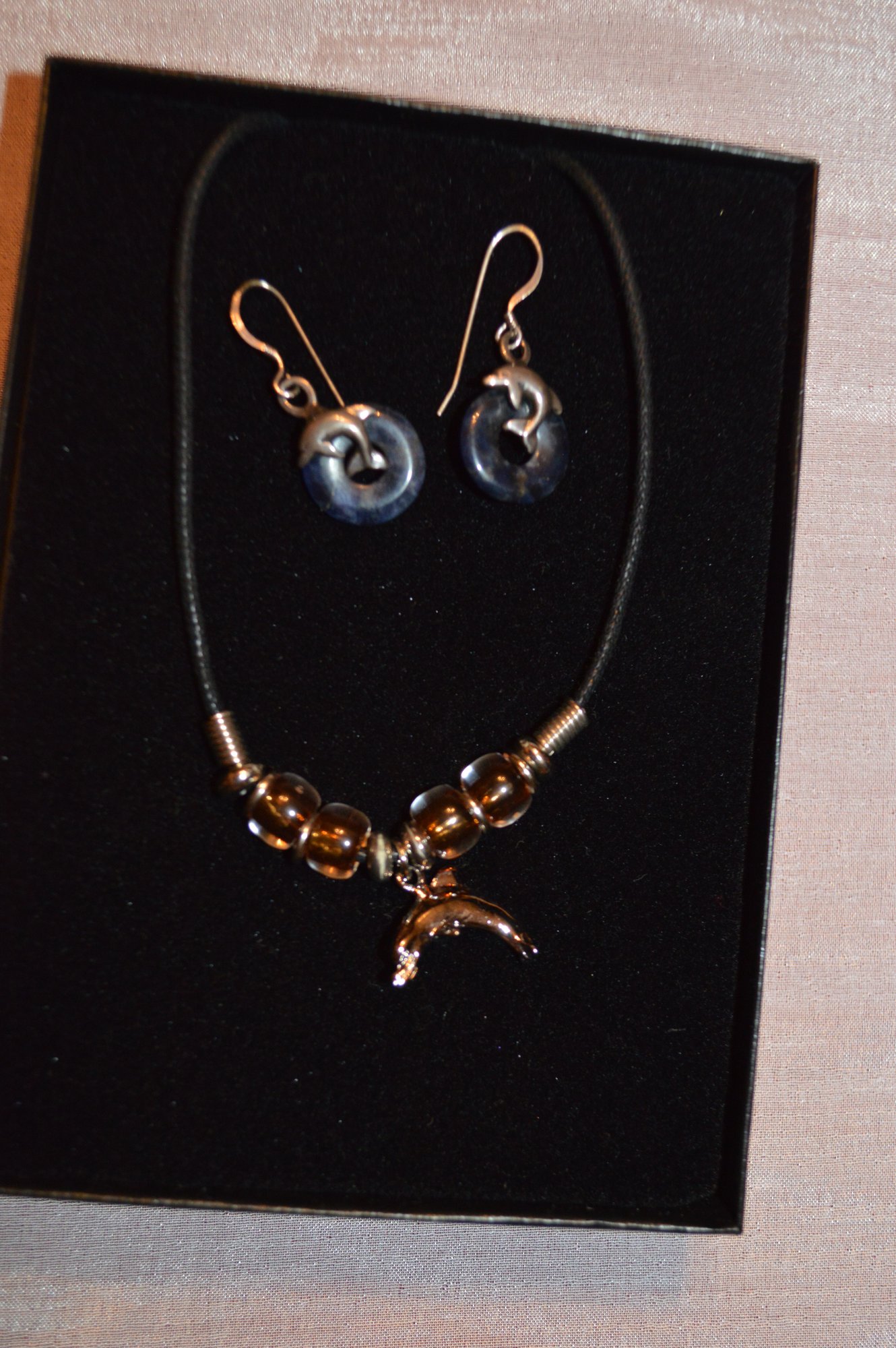 Earrings are blue lapis and pewter