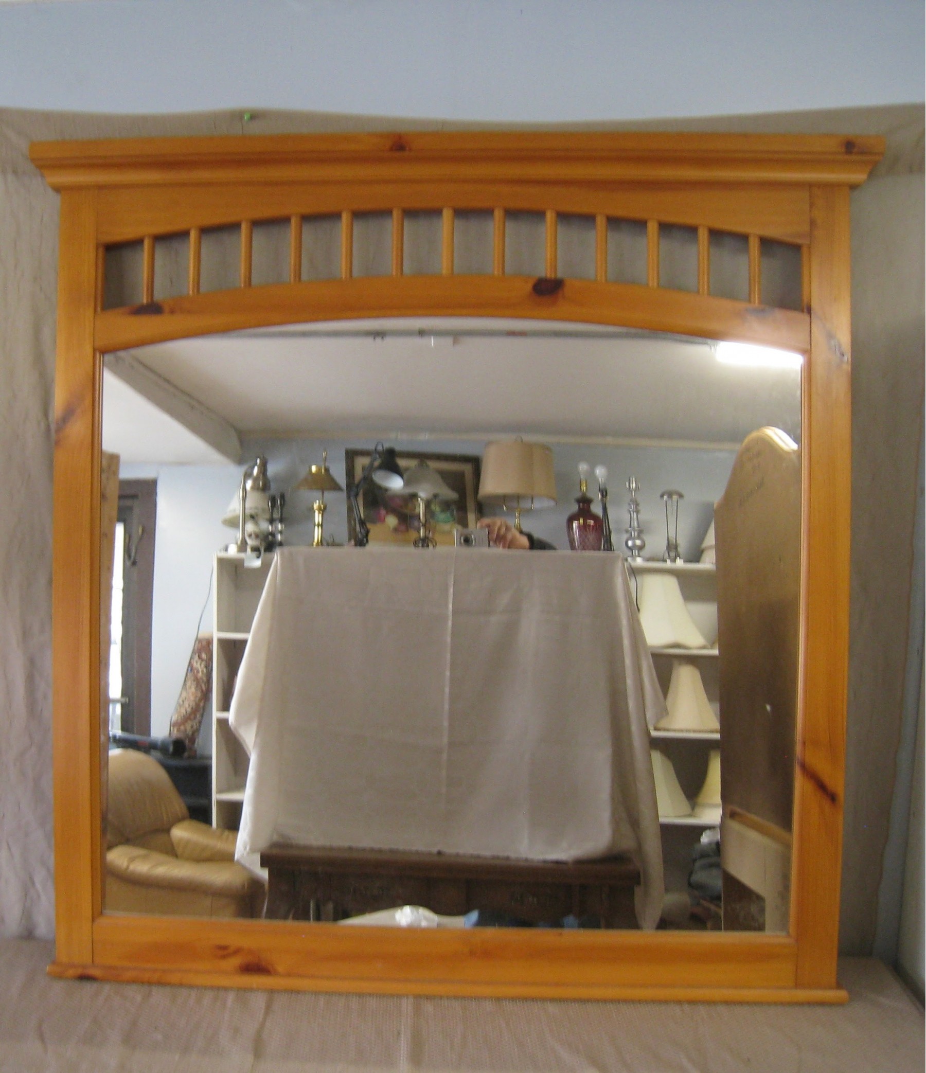 Knotty pine with natural finish. This would look fabulous painted