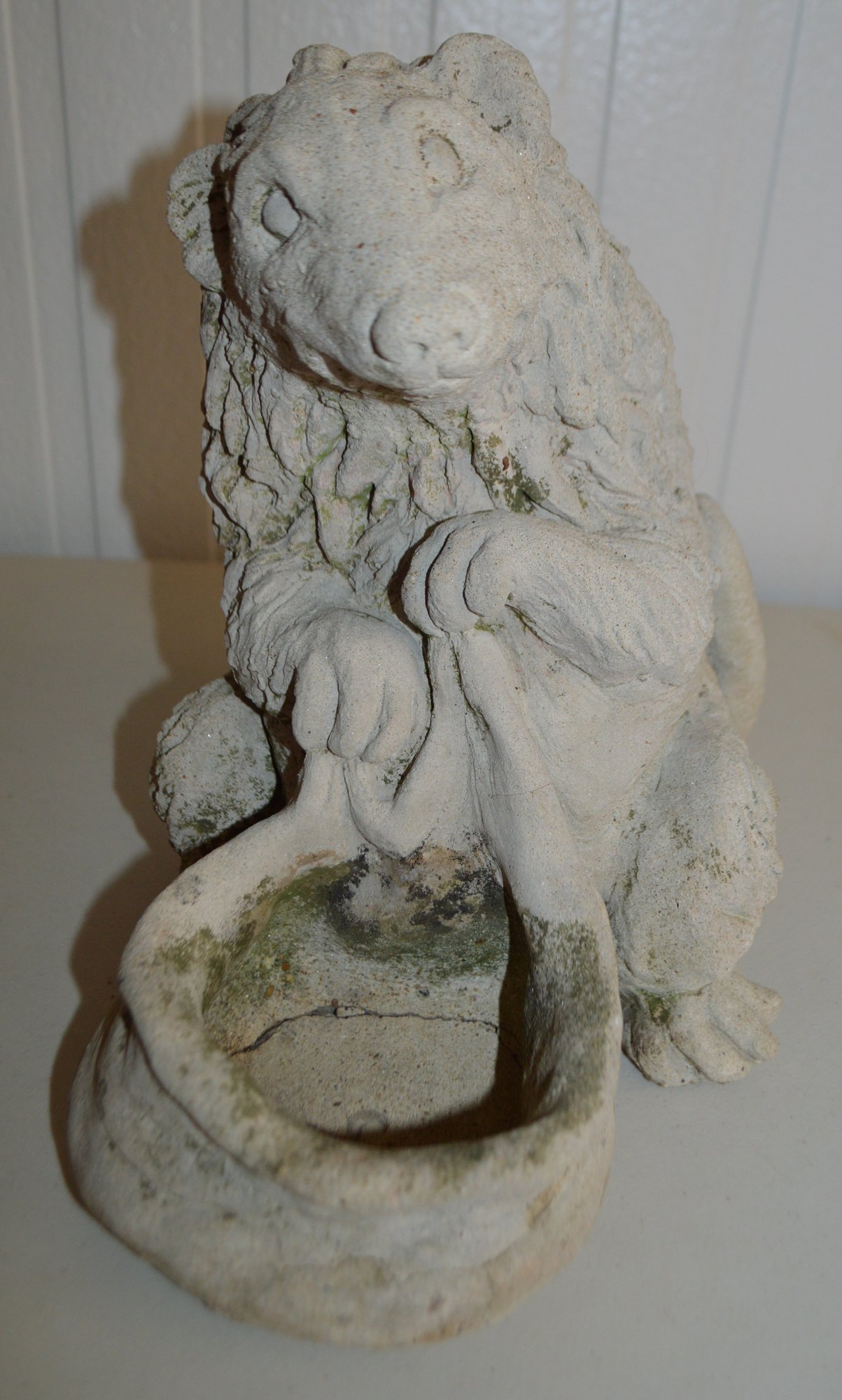 Has a flowerpot holder- great to display in your garden or porch step. Has been lightly power washed to show better detail.