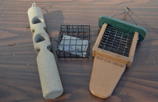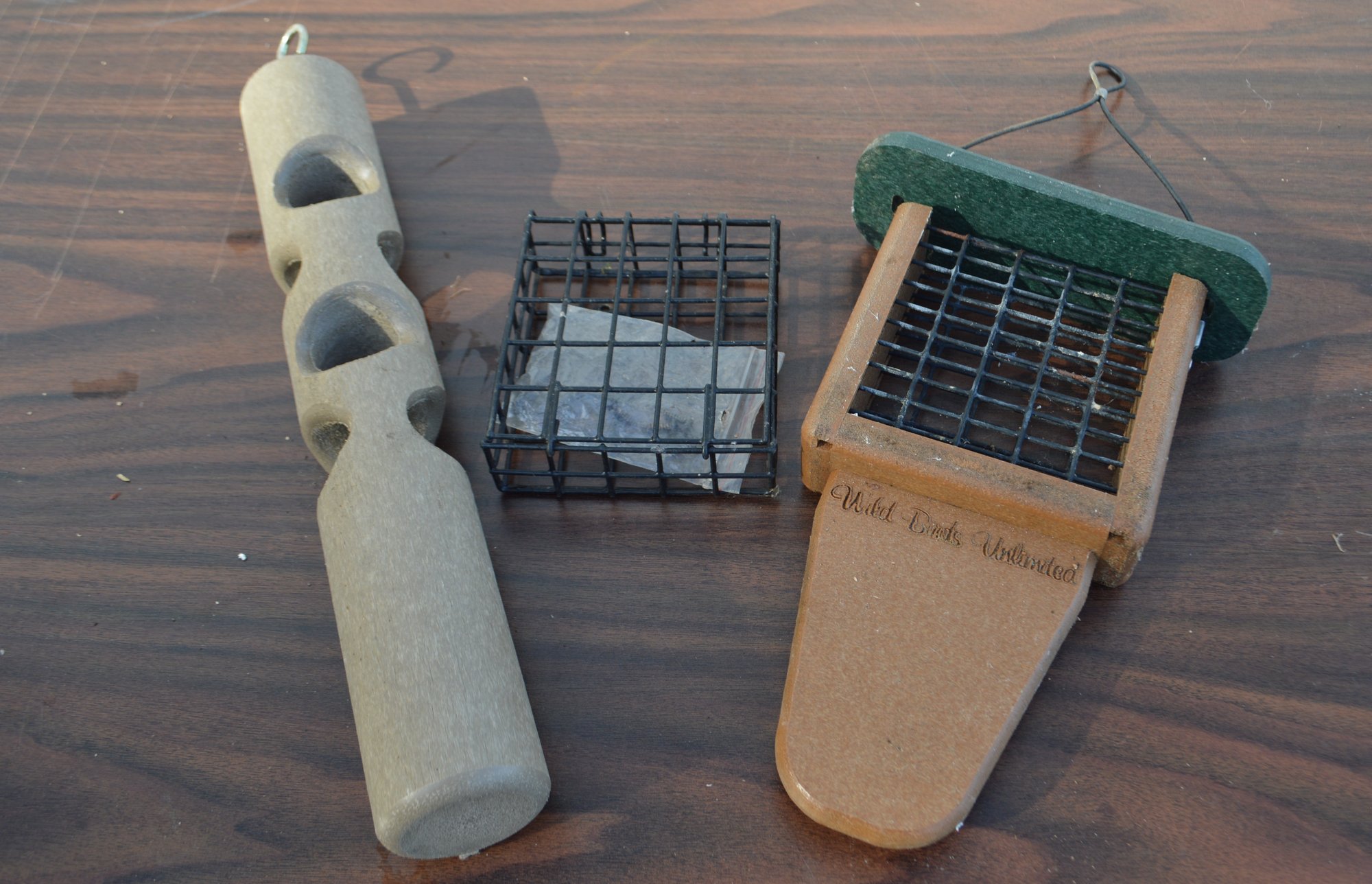 two are from Wild Birds Unlimited Brand and one is a mountable cage suet holder with hardware