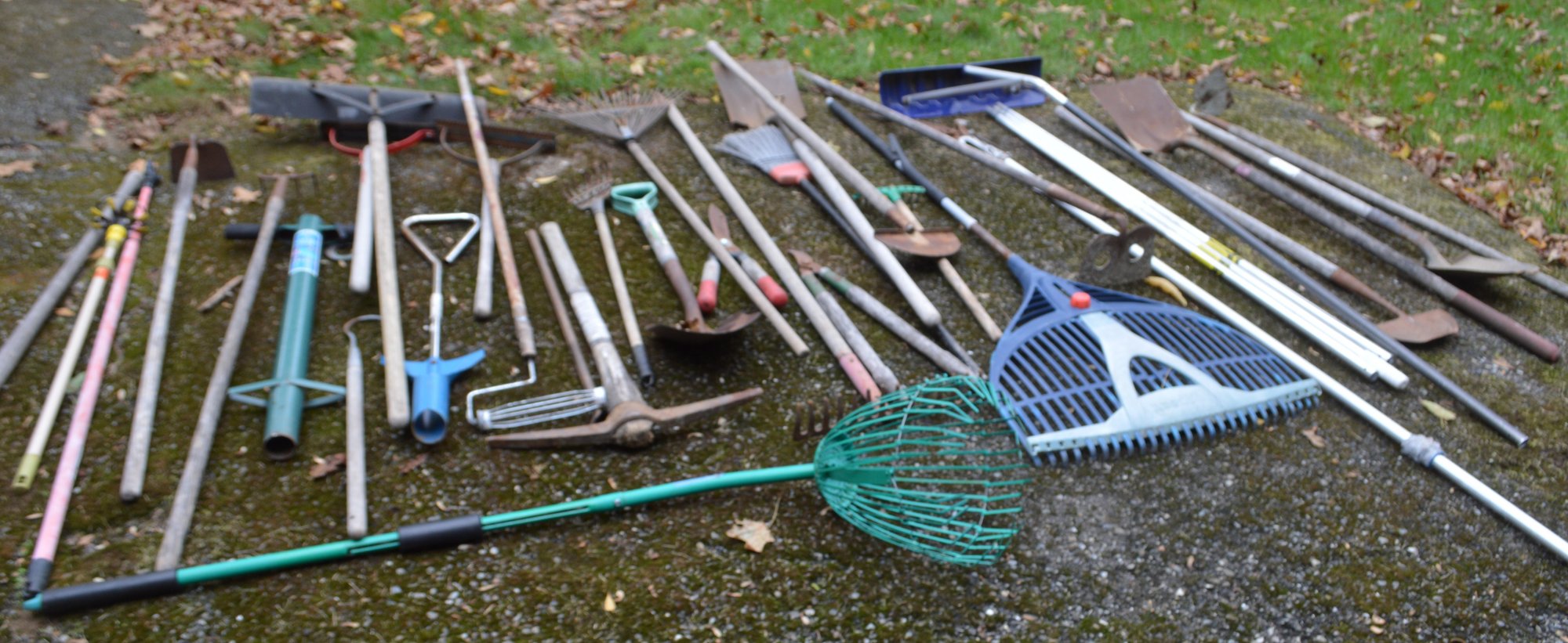 Assorted tools rake, dig, shovel, pick, plant, edge, clip and more!