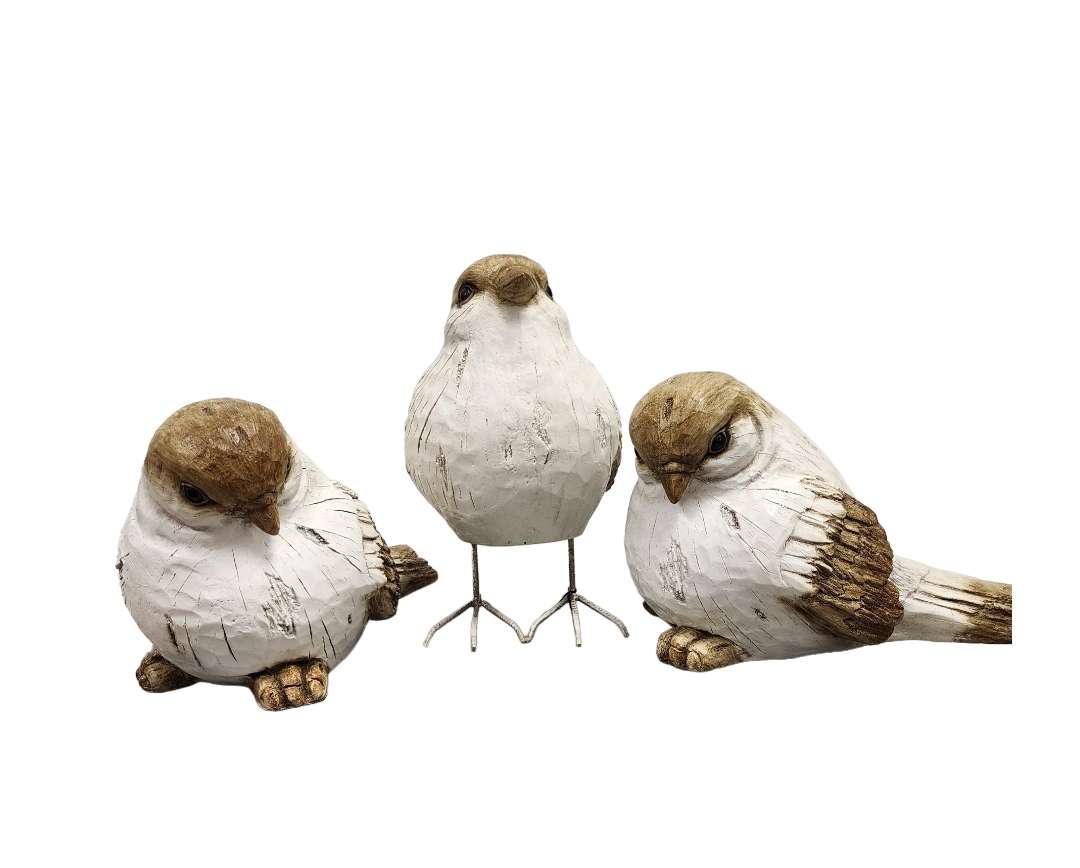 Rustic driftwood sparrows oversized; the material appears to be resin.