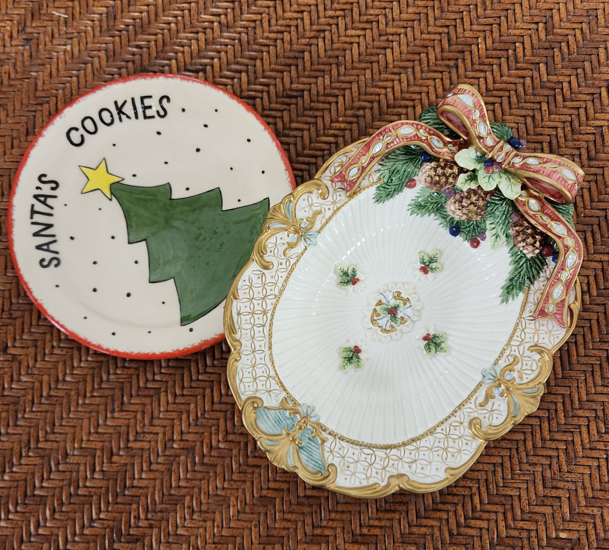 Fitz & Floyd Florentine Christmas Dish And Santa's Cookies Plate BF