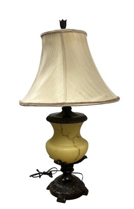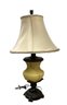 Decorative glass and patinated bronze finish lamp, working condition.