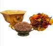 Maxcera Pottery Footed Bowl And 2 Faux Flower Arrangements MS