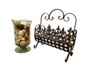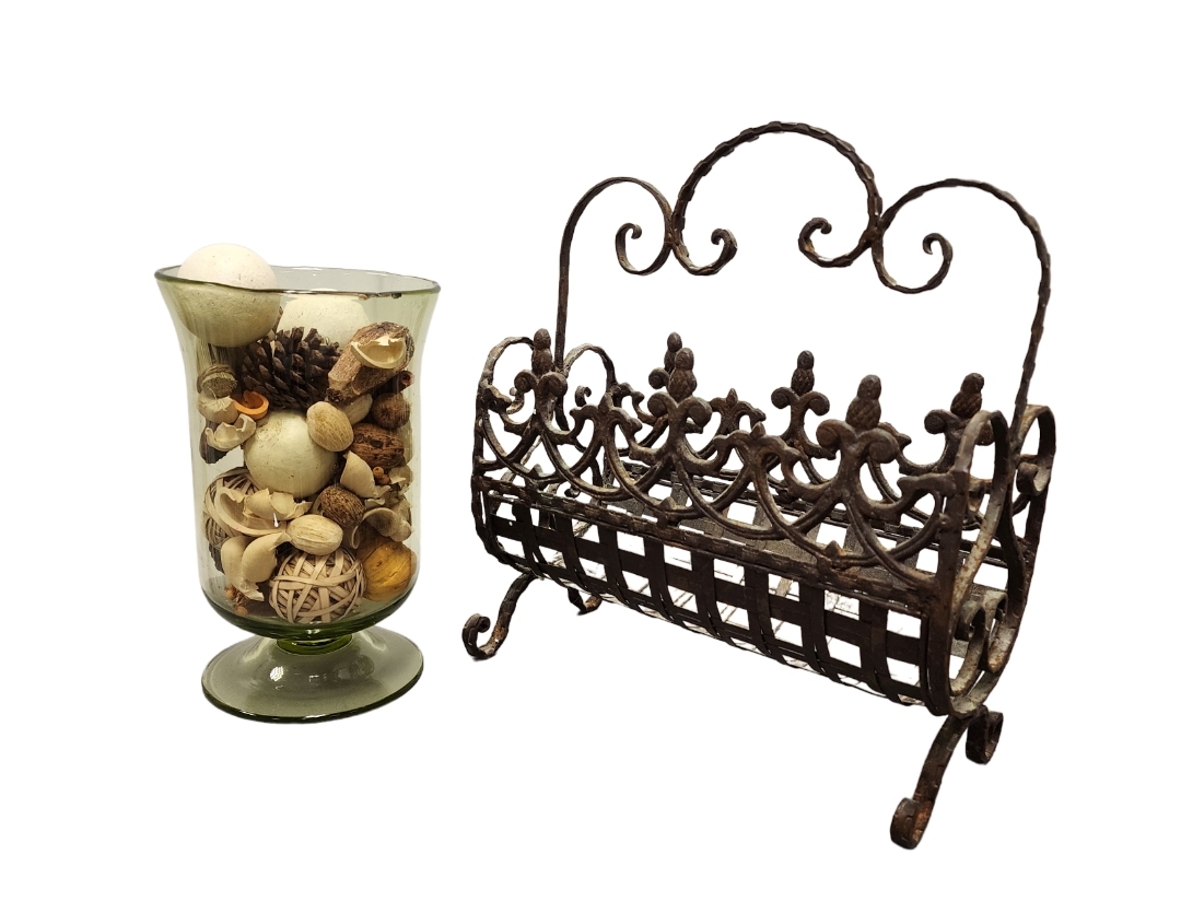 The wrought iron magazine holder would also look great used as a planter outside. Line it with coco fiber and use it outside.