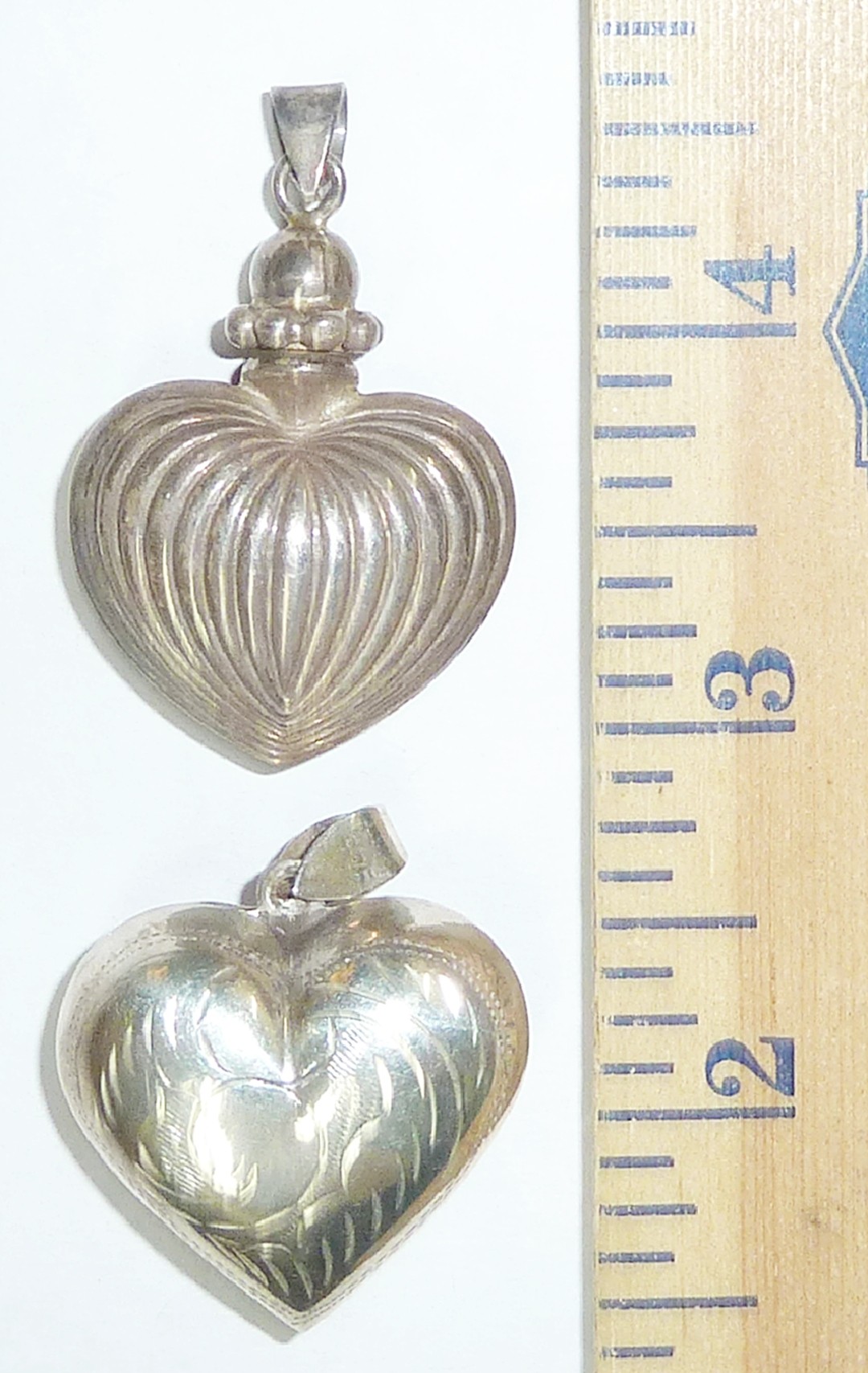 Notes: very good, nothing broken, ready to wear pair of vintage heart pendants just add your chain