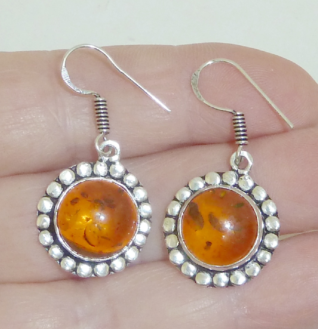 SHIP OR PICKUP ~ Lovely Amber stone dangle earrings for pierced ears, marked 925 on the backsides. I believe these are Amber, pretty domed stones. Ready to wear pretty jewelry that will go with every outfit.