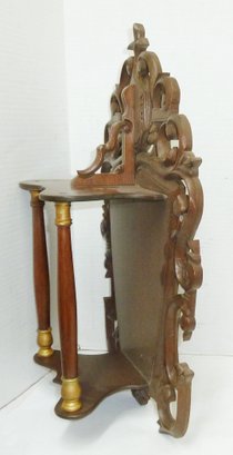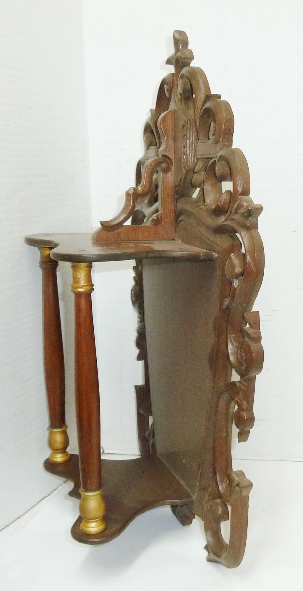 Notes: very good, lovely finish, ready to use well kept shelf, nicely carved, gilt trims, perfect for those smaller spaces