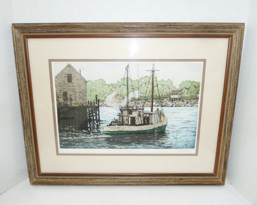 IN-HOUSE SHIPPING OR PICKUP AVAILABLE ~ This is a beautiful original hand painted etching, signed by John Collette, see the certificate attached to the back of the picture. Hand signed by the artist, professionally framed and ready to display. Seascape, wharf, boats Gloucester at its best a stunning piece of art for your home or office. $5. BOX FEE APPLIES if you are shipping this item.