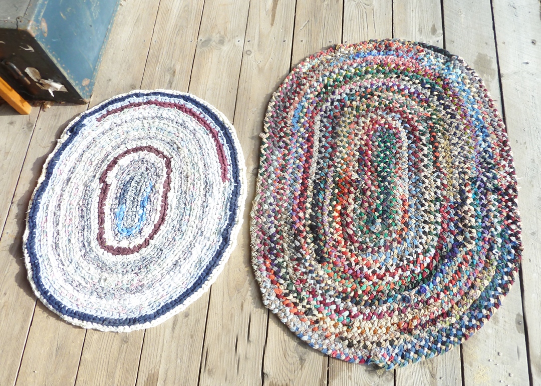 IN-HOUSE SHIPPING OR PICKUP AVAILABLE ~ Vintage pair of braided rugs, scatter or area rugs, nice colors to blend with your decor. Used older rugs with some wear, lots of life left in them to use. $5. BOX FEE APPLIES if you are shipping this item. See photos for measurements.