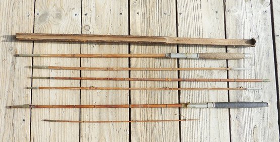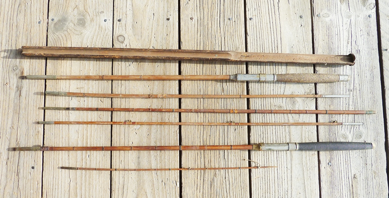 Notes: Pieces look good, usable bamboo lengths, appear to have original finish, many with line hooks attached