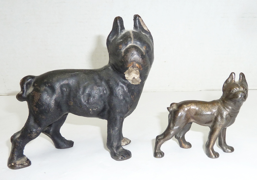 IN-HOUSE SHIPPING OR PICKUP AVAILABLE ~ Take a look at this PAIR of vintage cast iron Boston Terrier dogs! Two different sizes to complete your Hubley collection ~ take a look