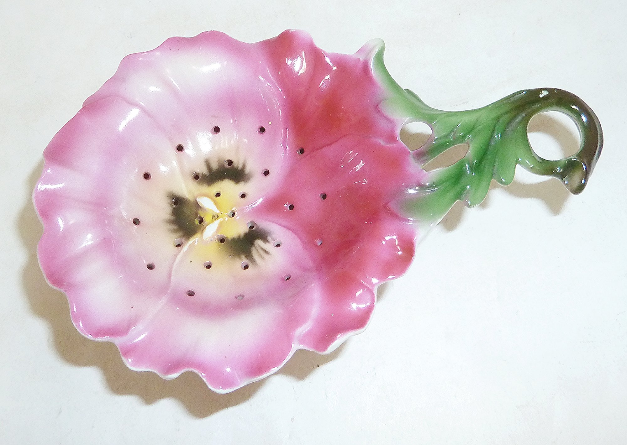 IN-HOUSE SHIPPING OR PICKUP AVAILABLE ~ This piece has WOW color, beautiful pansy flower shaped tea strainer, vintage signed ROYAL BAYREUTH, ready to use or display. Make tea time special with this gorgeous piece on your table or stand. We have several lots of Royal Bayreuth listed in this auction that are sold separately please see them all.